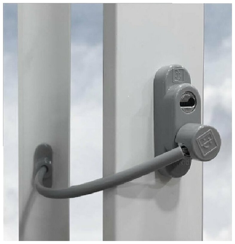 Детский замок Пенкид PenKid - ограничитель окна с тросиком серый