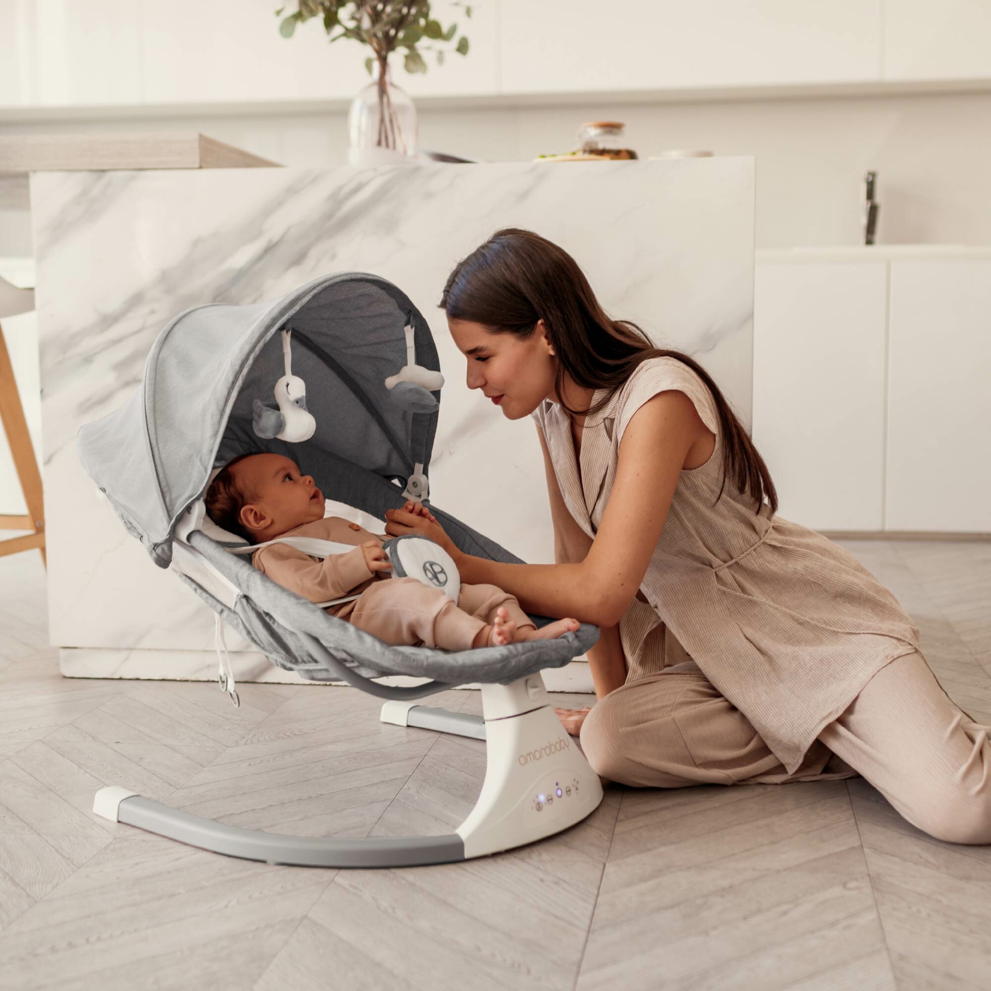 Электронные качели детские AMAROBABY LUCKY SWING, бежевый
