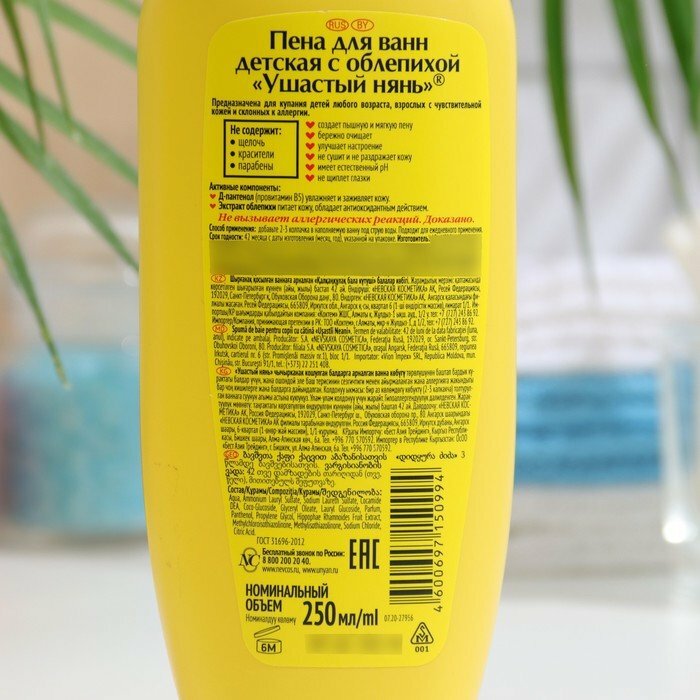 Купить Ушастый Нянь Пена для ванн Витаминная с облепихойУшастый Нянь Пена для купания Витаминная с облепихой и пантенолом 250 мл 1 шт