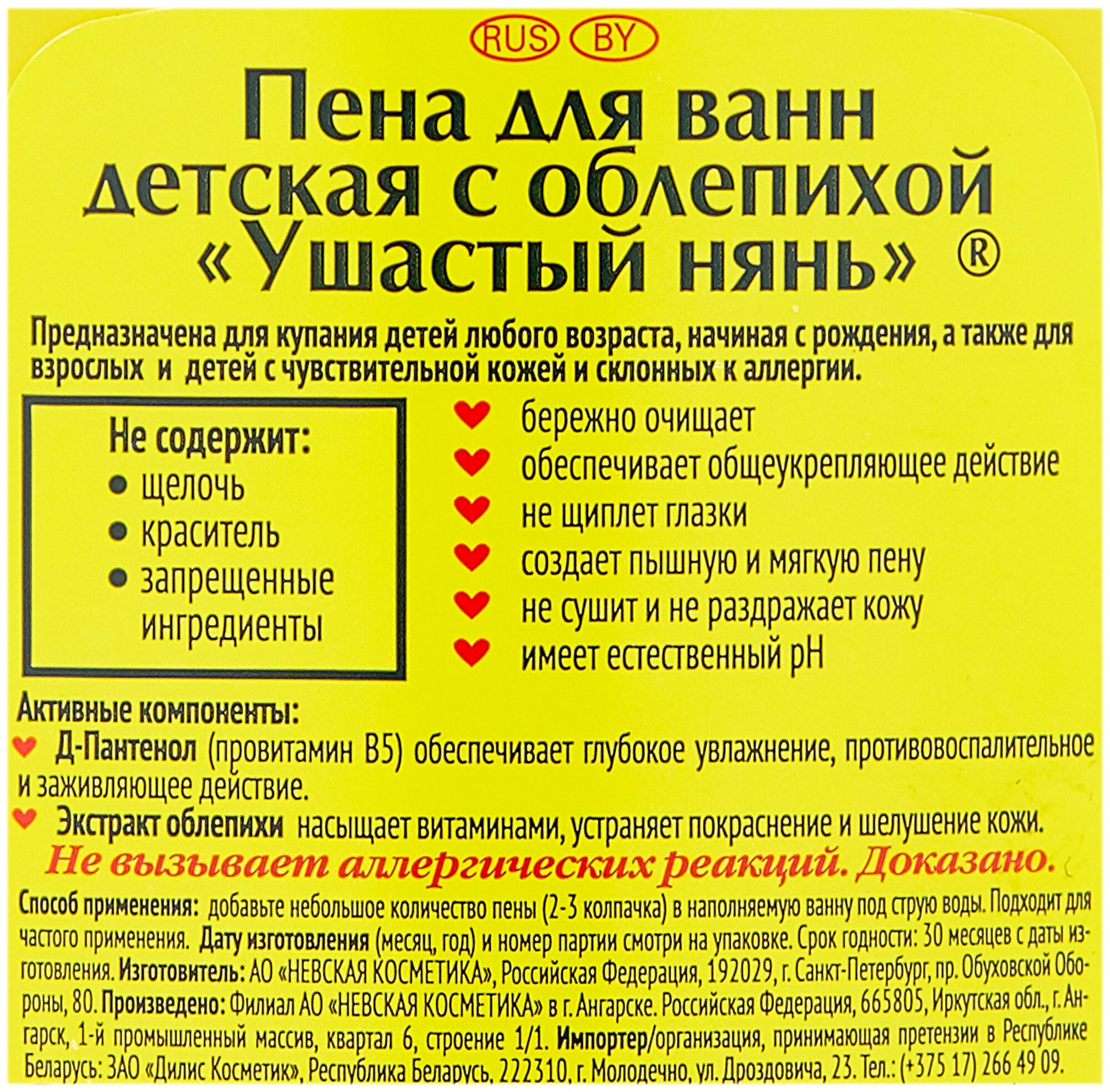 | Комплектация | Детская пена для купания витаминная с облепихой Ушастый нянь 250 мл. х 2 шт. |