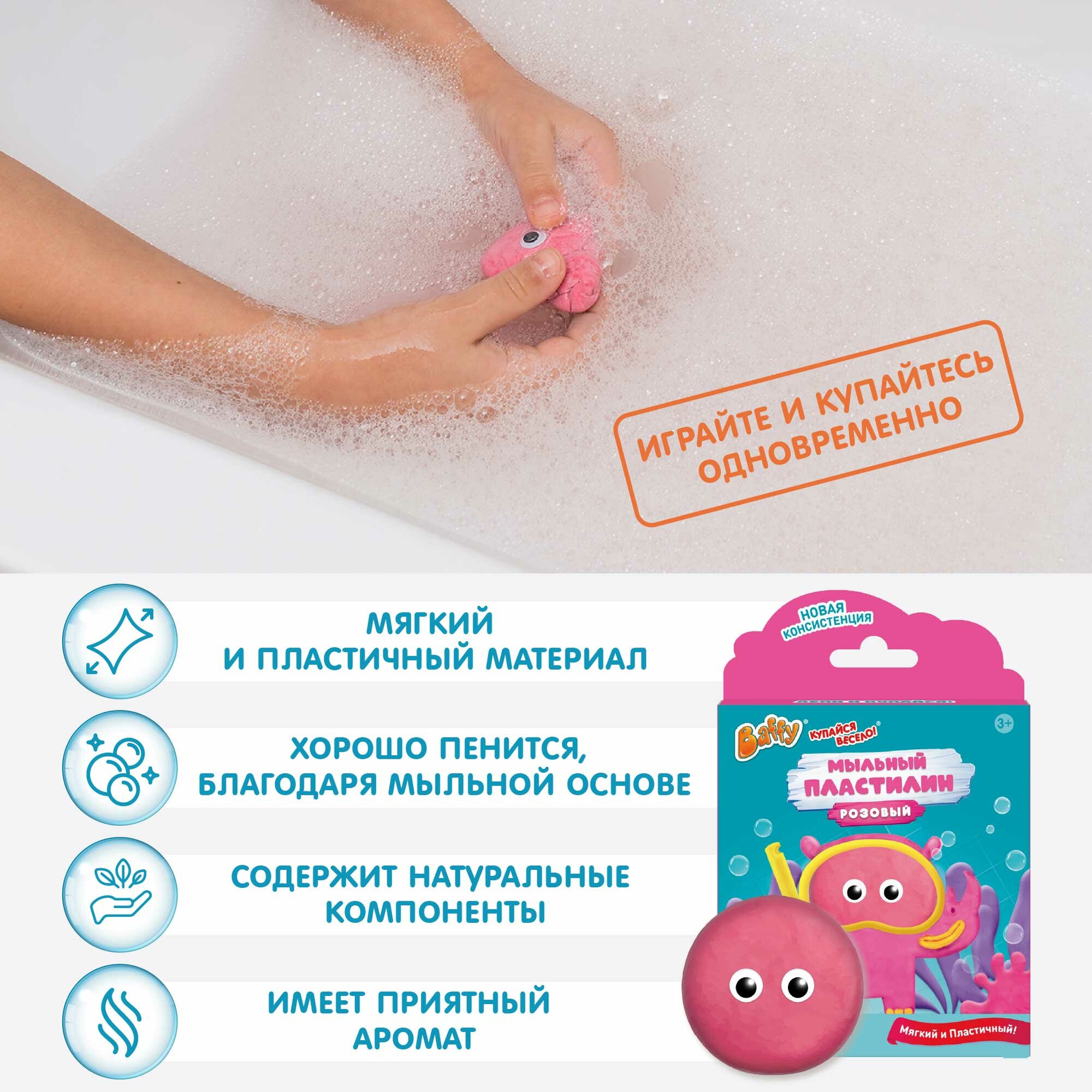 Мыло пластичное детское «Мыльный пластилин» товарных знаков Baffy, купайся весело!, розовое