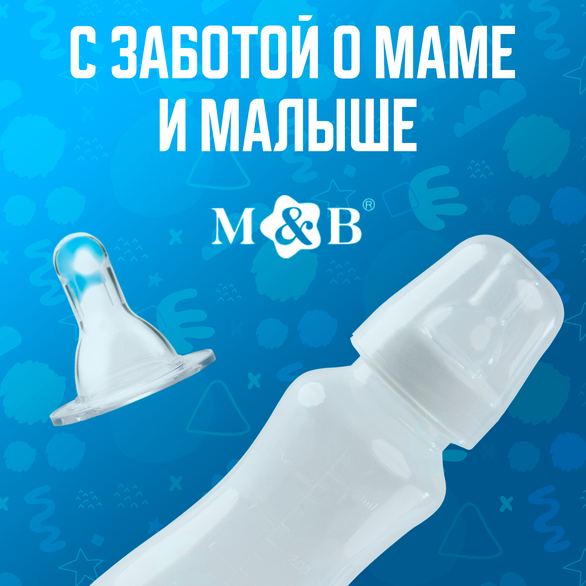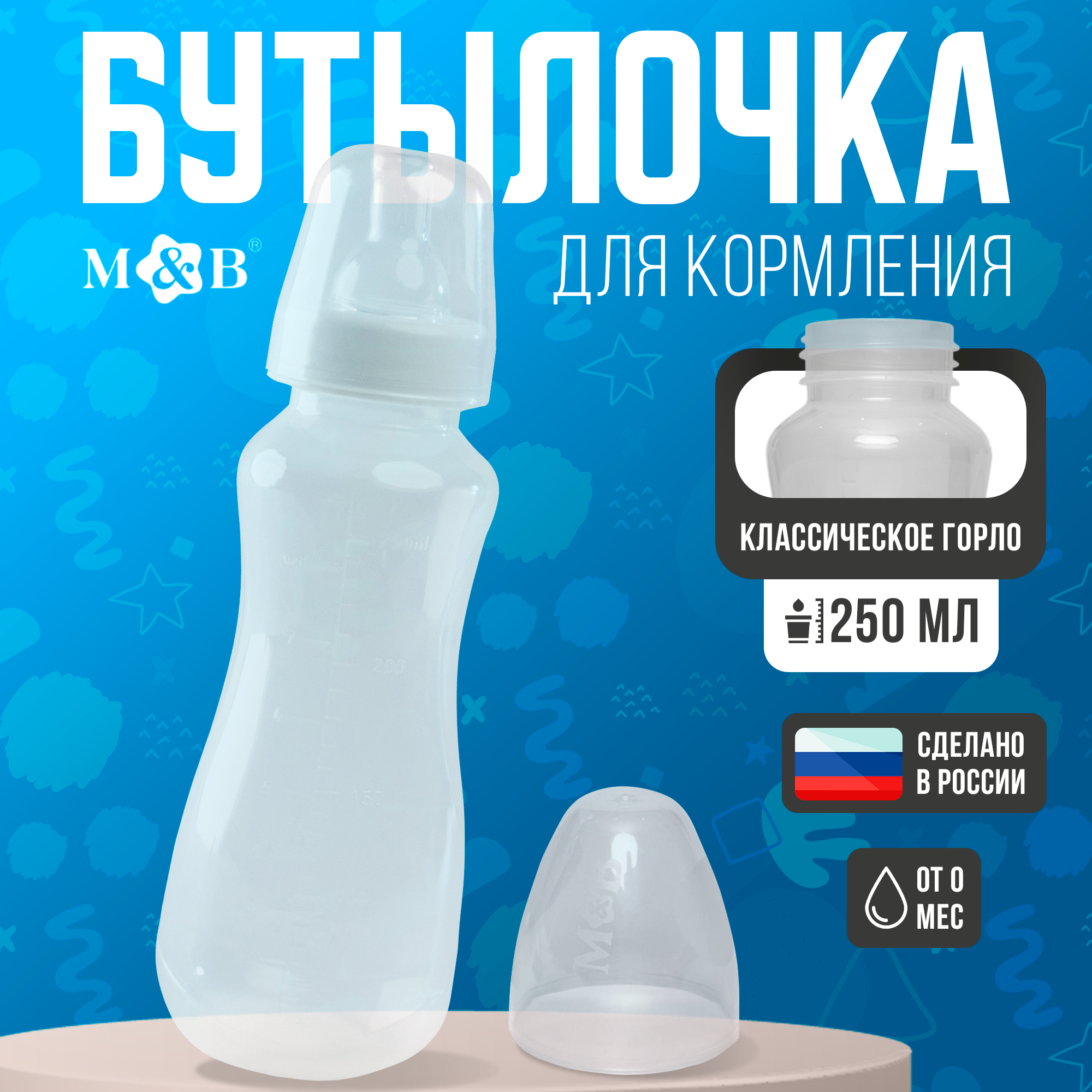 Бутылочка для кормления малыша M&B, классическое горло, от 3 мес, 250 мл, приталенная, цвет белый интересное: