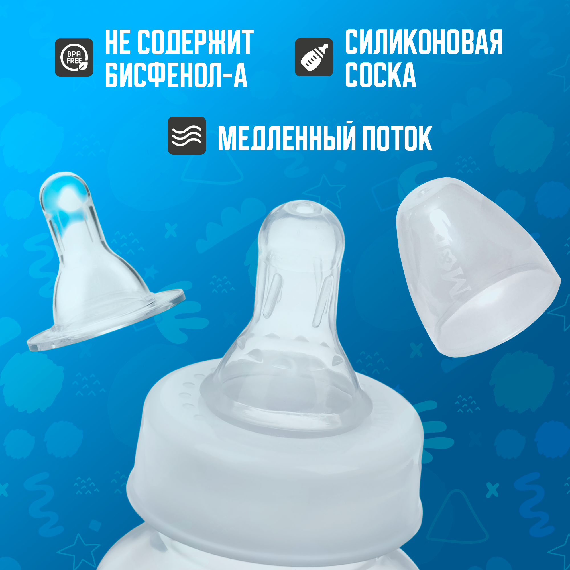 | Особенности | антиколиковая / мытье в посудомоечной машине / не содержит бисфенол А / с мерными делениями |
