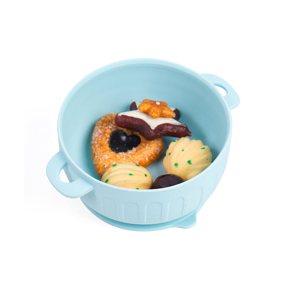 Набор максимальный (9 предметов) силиконовой детской посуды для кормления малыша Plates светло-синий