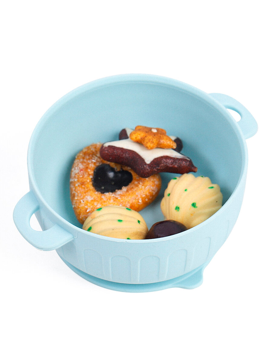 Купить Набор детской посуды силиконовый для кормления малыша на присосках, 9 предметов, голубой, для мальчика