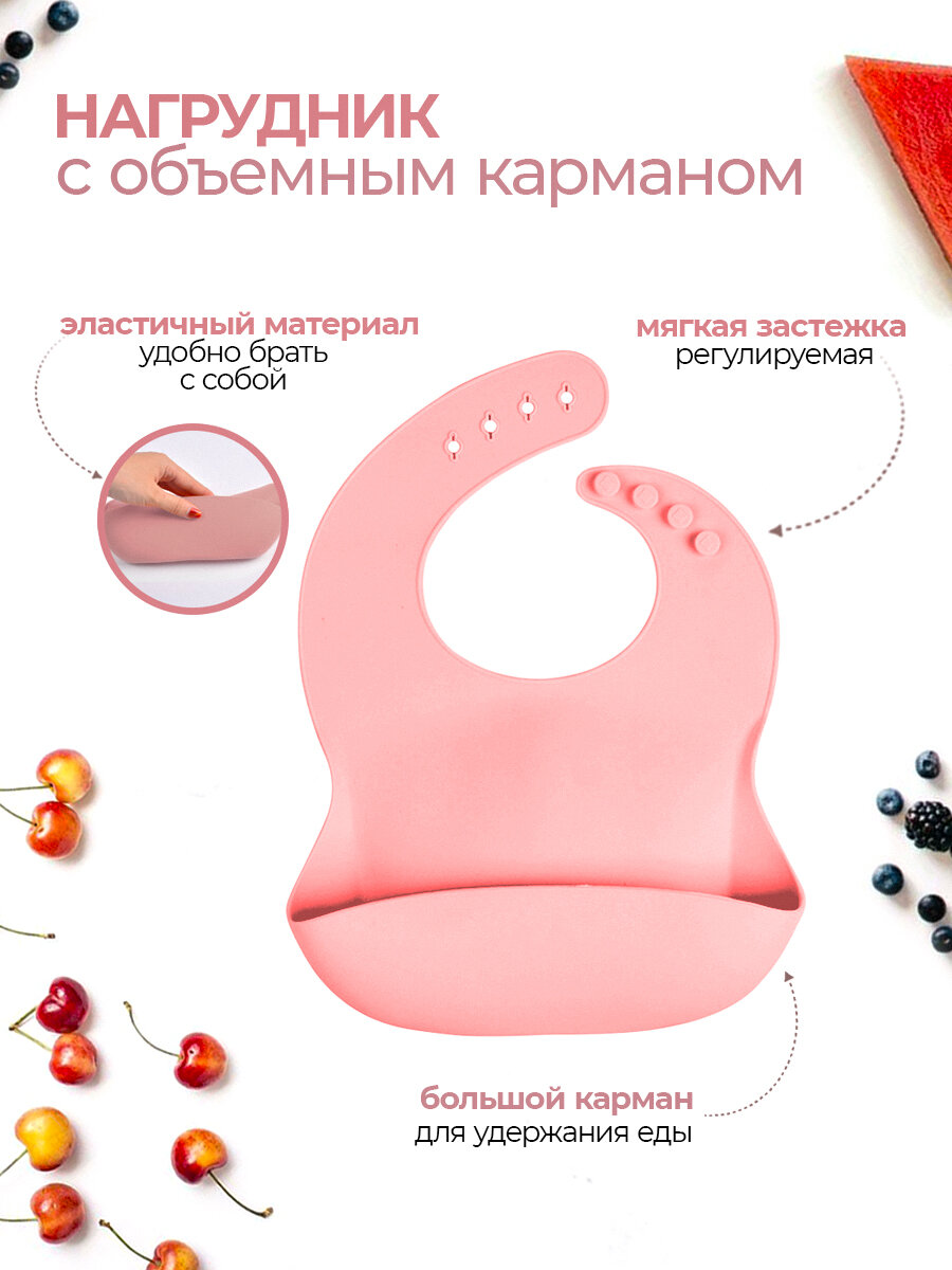 Набор максимальный (9 предметов) силиконовой детской посуды для кормления малыша Белочка розовый