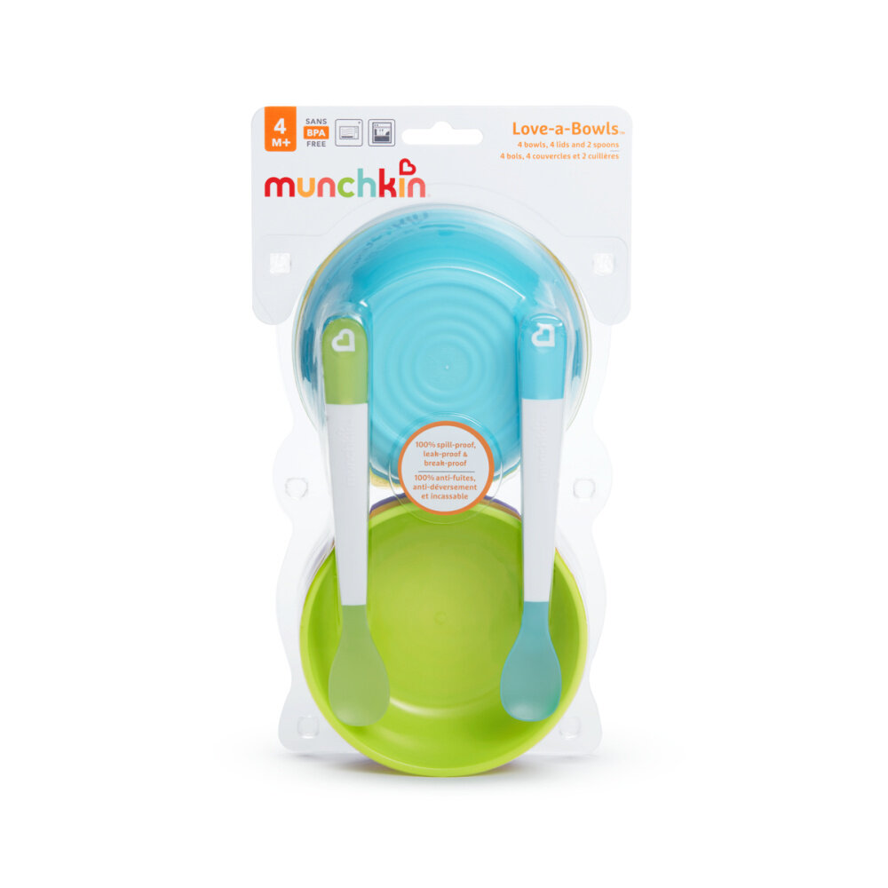 Купить Набор мисок Munchkin, Love-a-Bowls™ с крышками и 2 ложечки. 6+