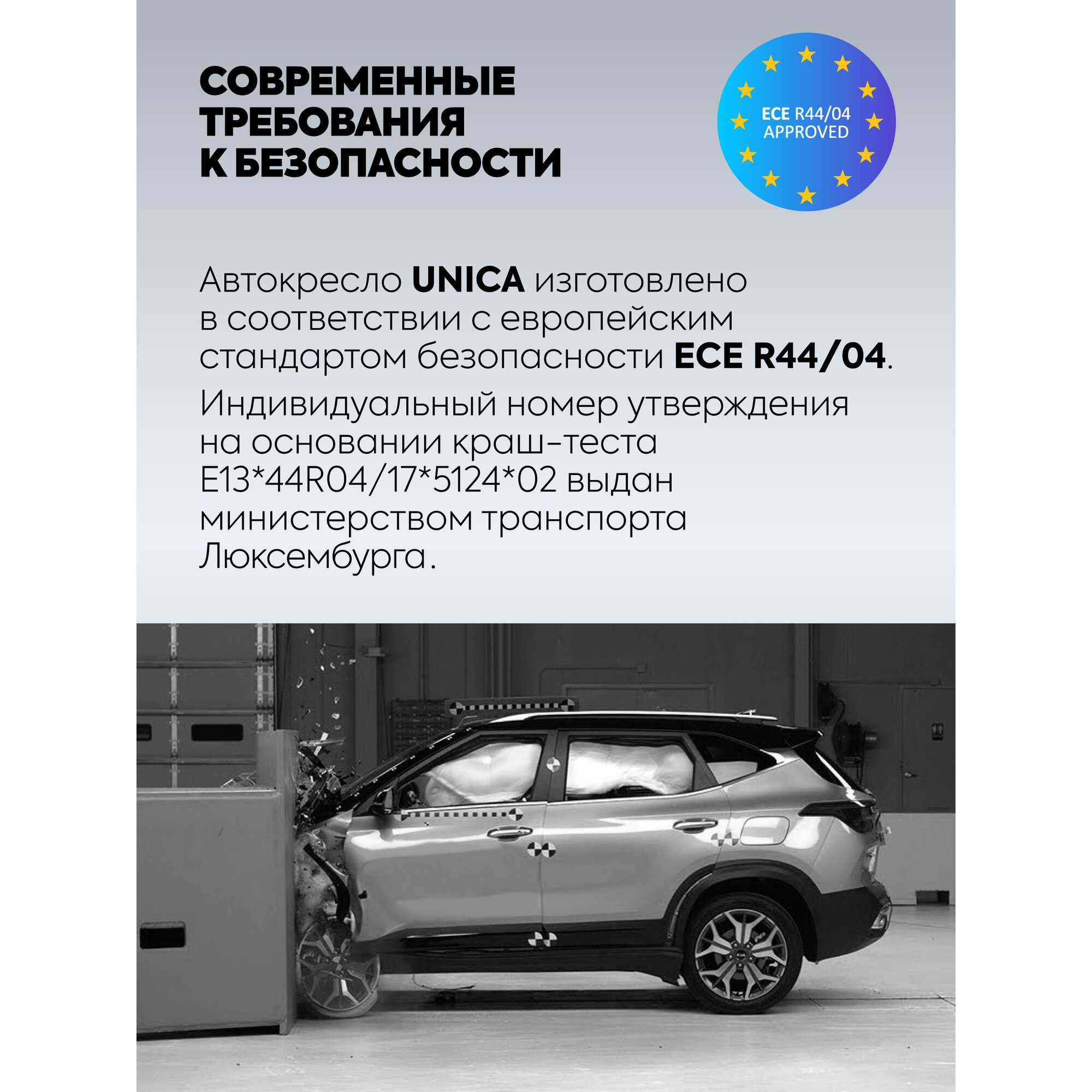 | Оценка краш-теста | ECE R44/03 |