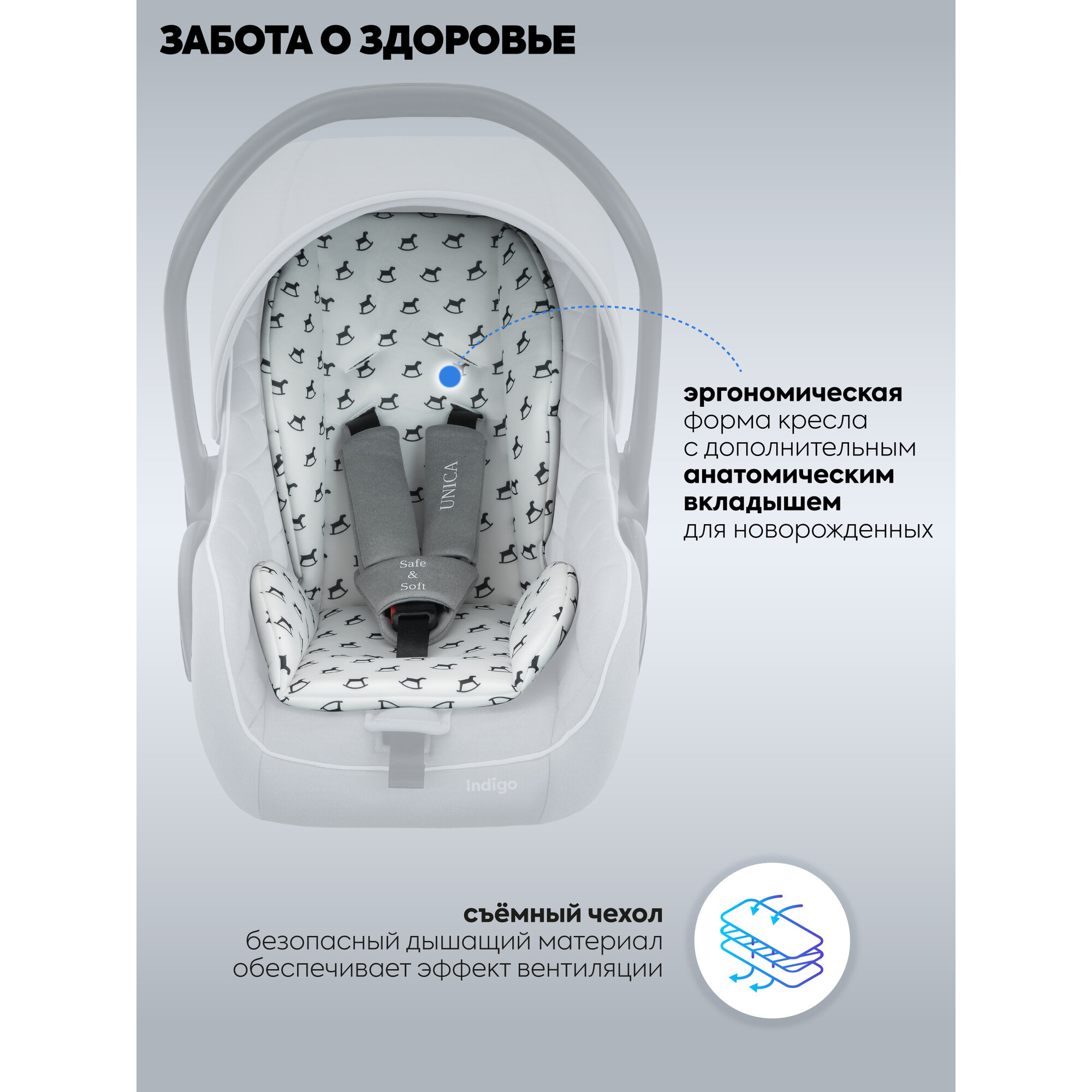 Автокресло Indigo UNICA, группа 0+, 0-13 кг, св. серый интересное: