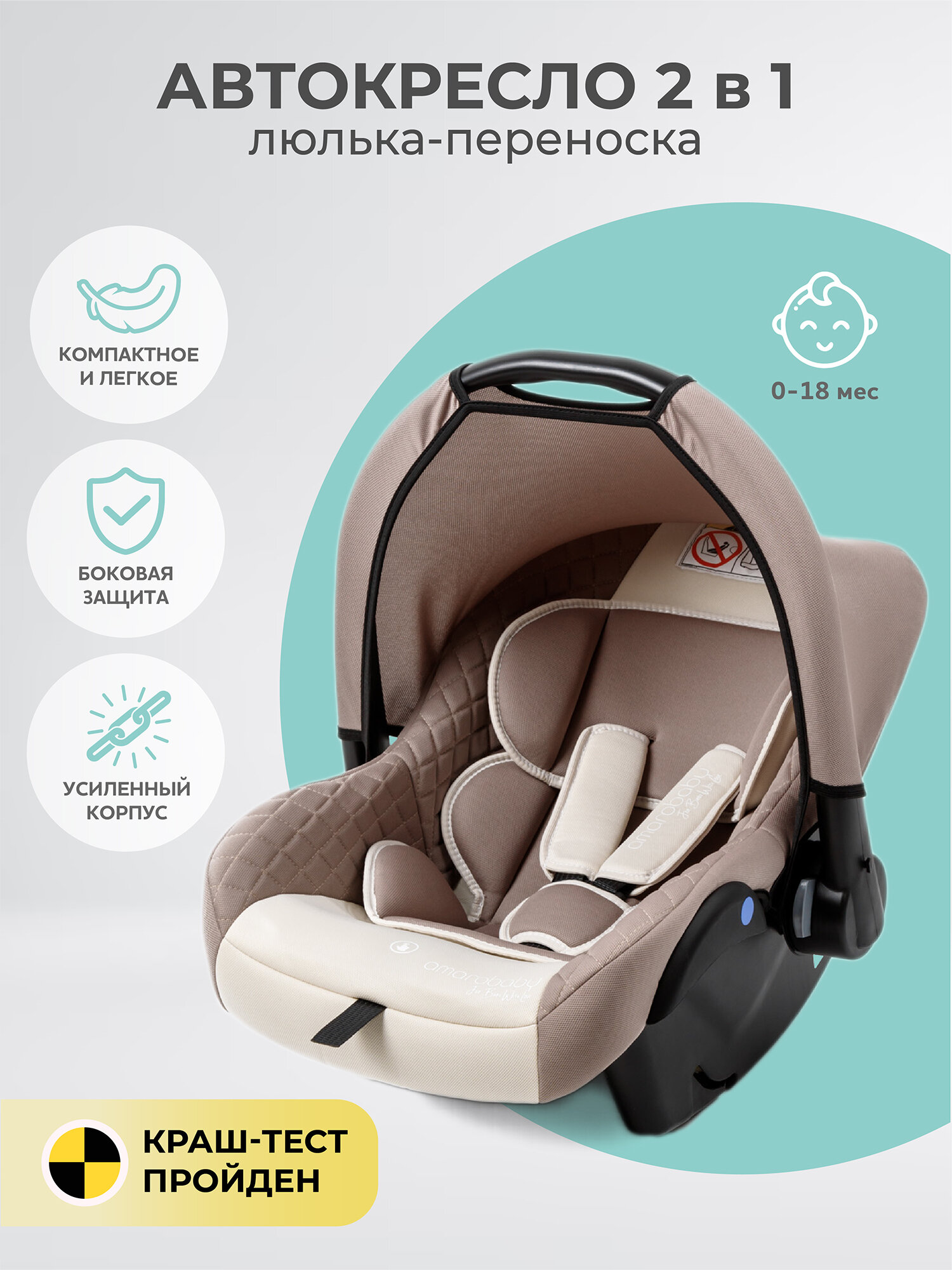 Автокресло Amarobaby Baby comfort, группа 0+, светло-бежевый (AB222008BC/38)
