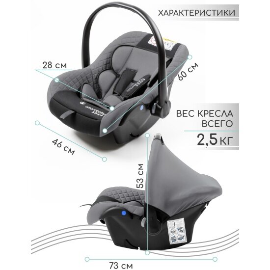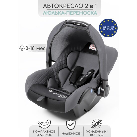 Автокресло детское AMAROBABY Baby comfort, группа 0+, (серый/чёрный)