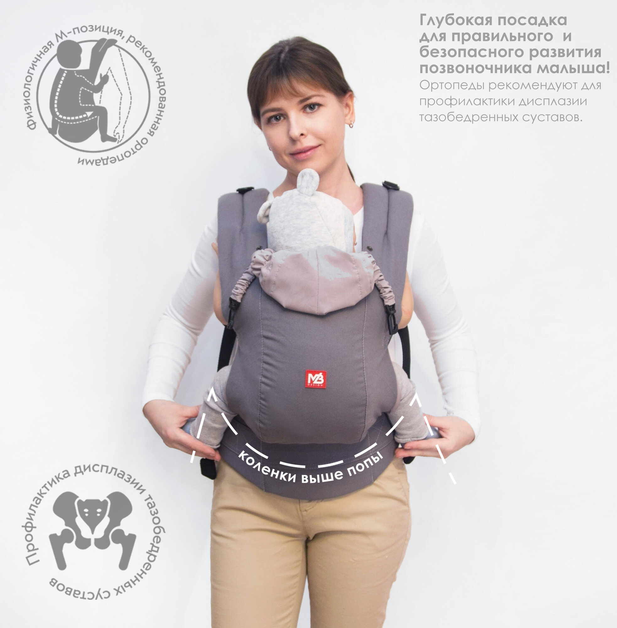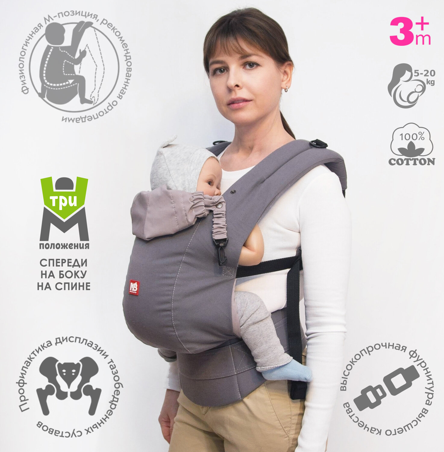 Эрго-рюкзак M-Baby Carrier от 3-х месяцев серый интересное: