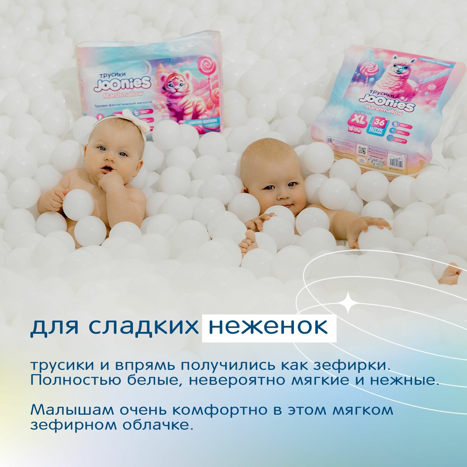 Подгузники-трусики JOONIES Marshmallow, размер XL (12-17 кг), 36 шт.
