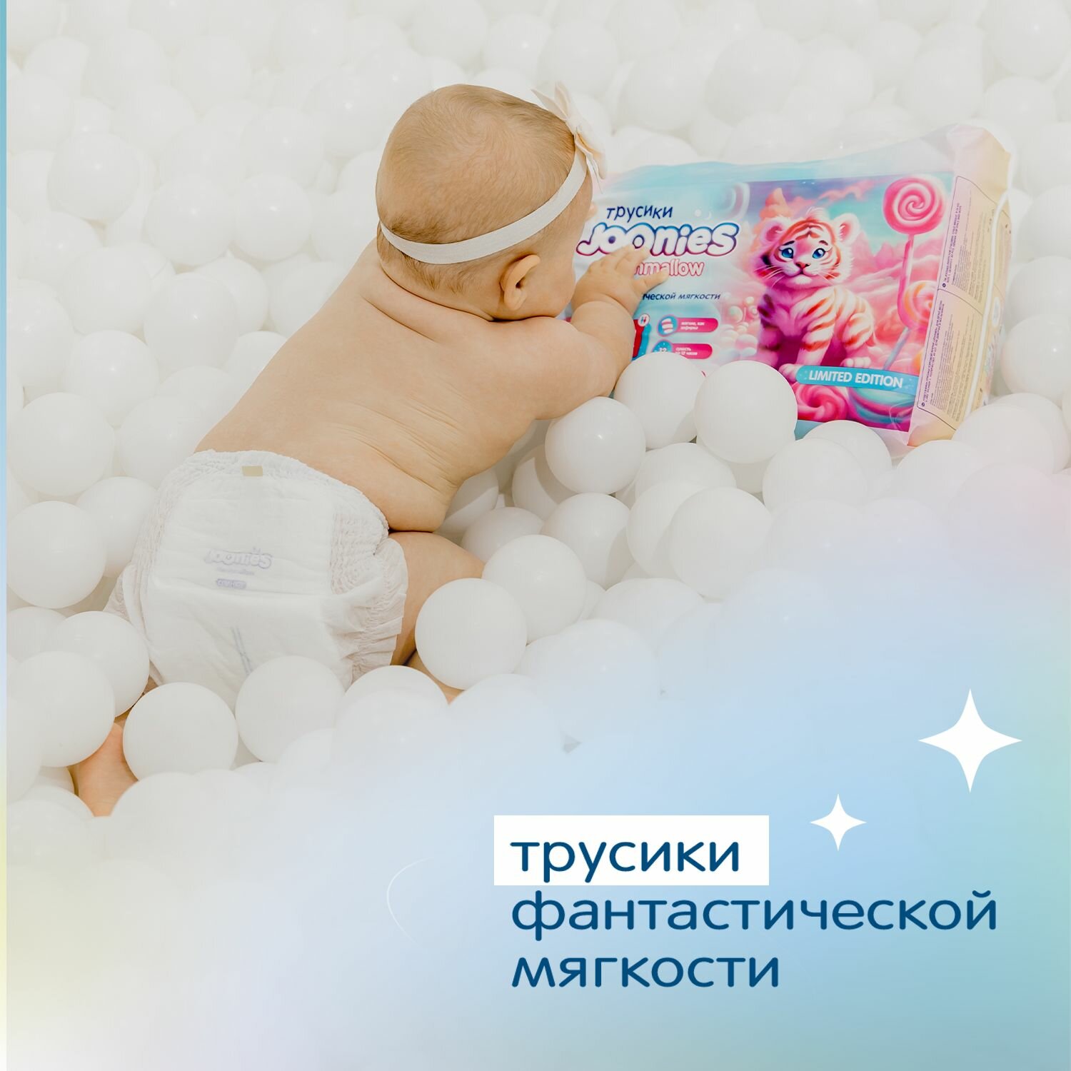 СохранитьПодгузники-трусики JOONIES Marshmallow, размер L (9-14 кг), 42 шт Joonies 10345812 . интересное: