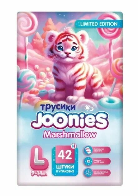 Подгузники-трусики JOONIES Marshmallow, размер L (9-14 кг), 42 шт 10345812