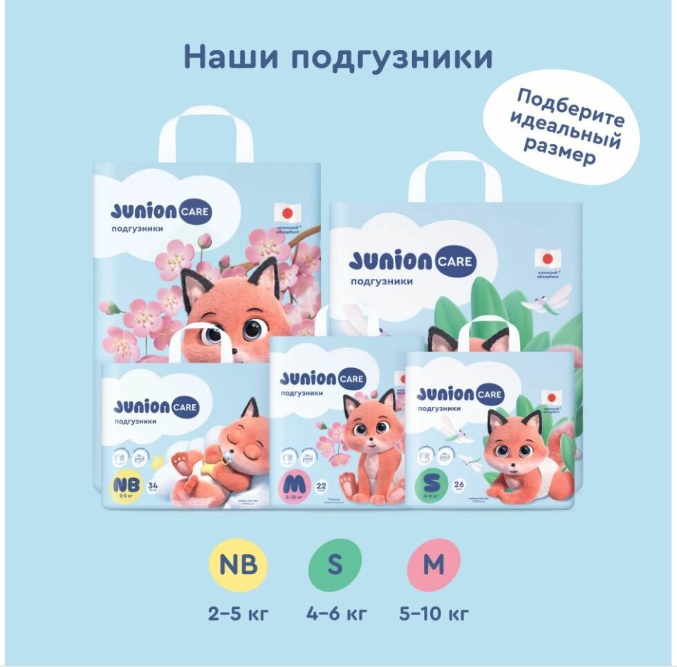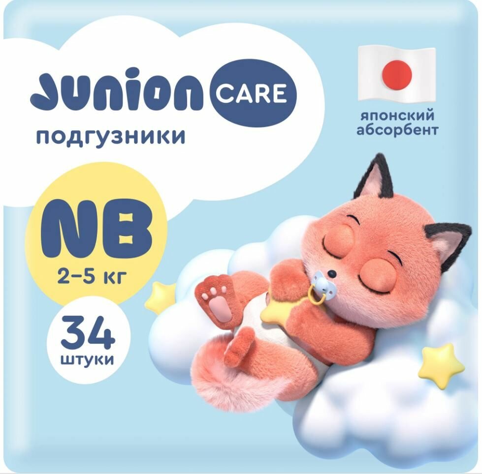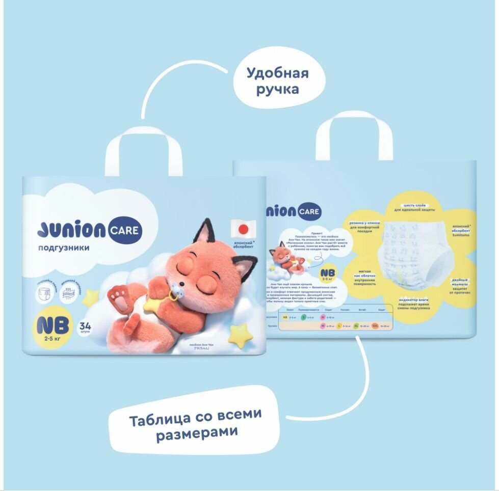 Подгузники детские Junion Care, для новорожденных детей NB, 2-5 кг, 34 штуки интересное: