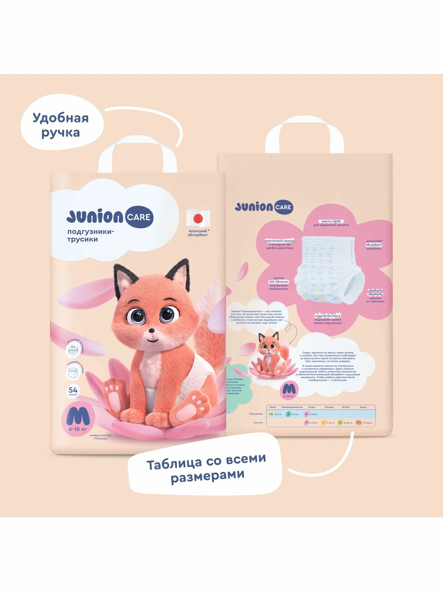 Купить Подгузники трусики детские Junion Care, размер M, 6-10 кг, 54 штуки