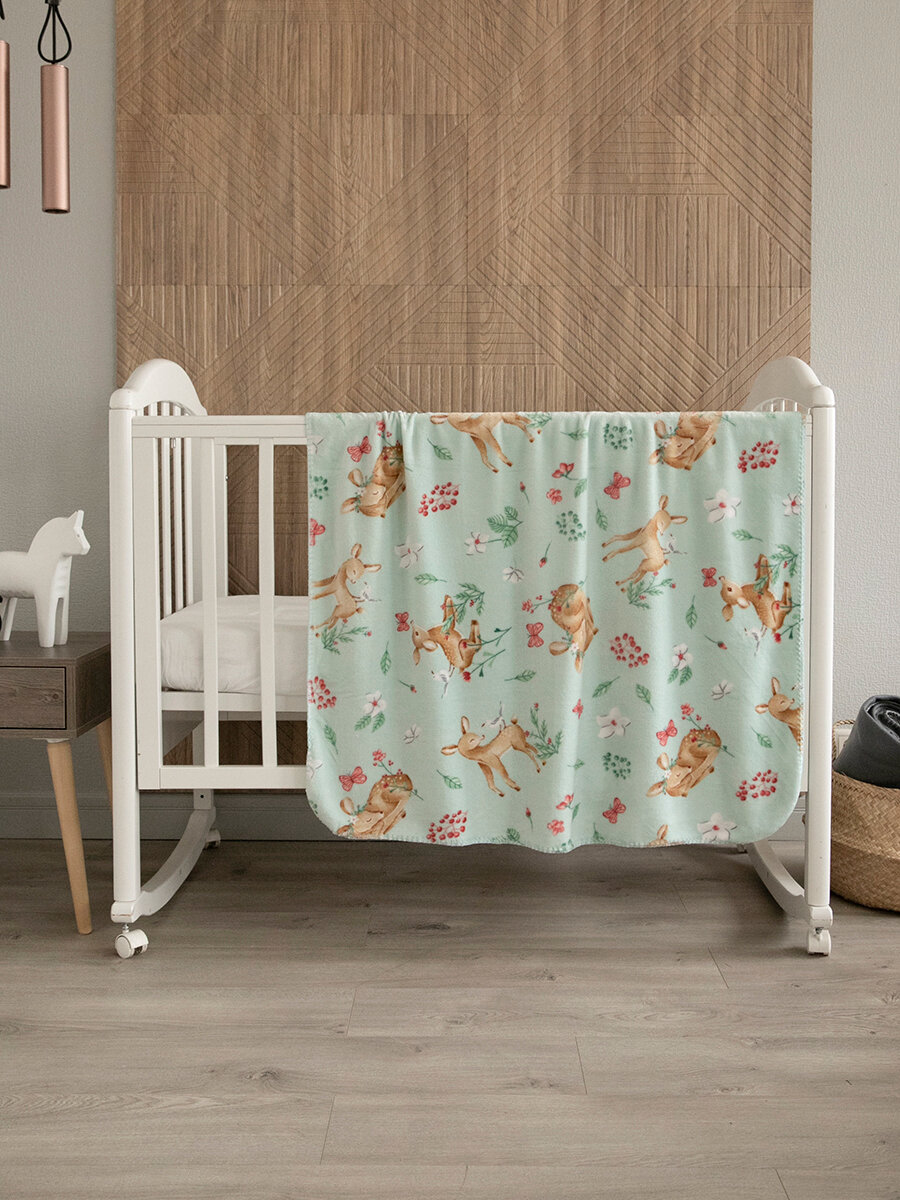 Плед для новорожденного 75х100 пушистый детский плюшевый в кроватку коляску "Оленята", бирюзовый