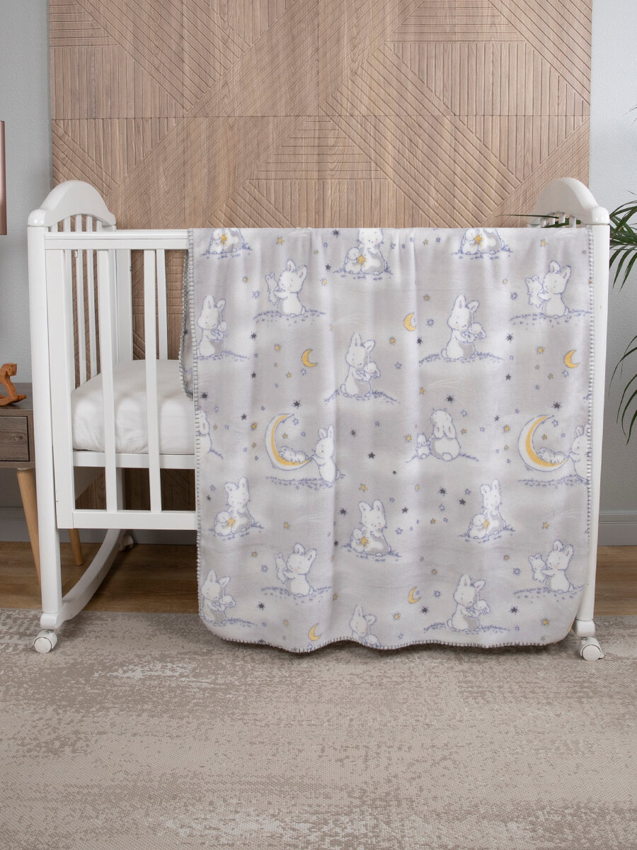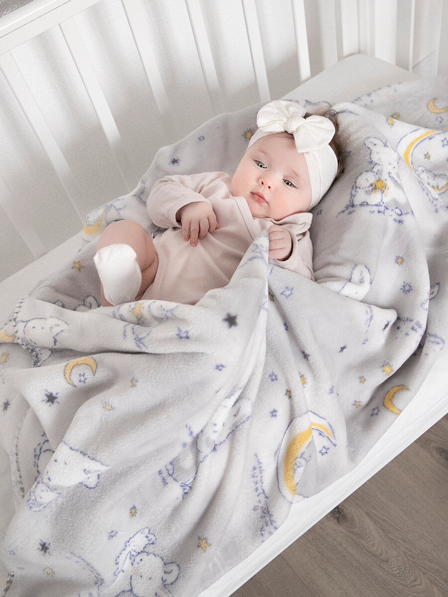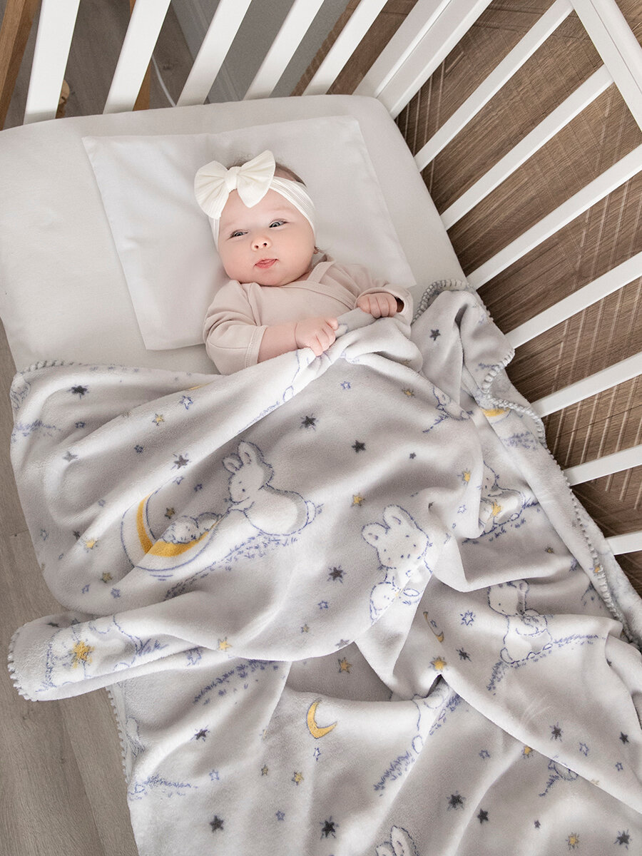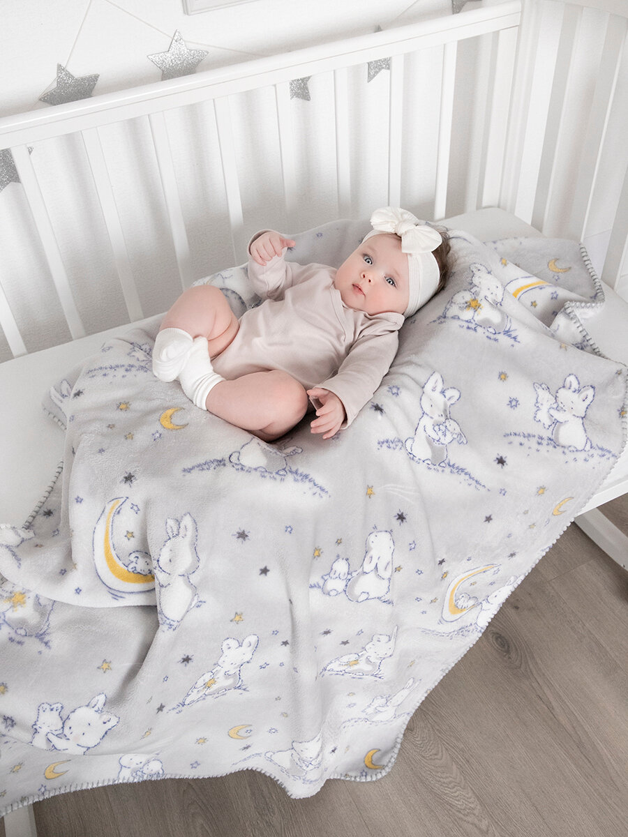 СохранитьПлед для новорожденного 75х100 пушистый детский в кроватку, коляску Tessolo Home, "Лунный зайчик", серый интересное: