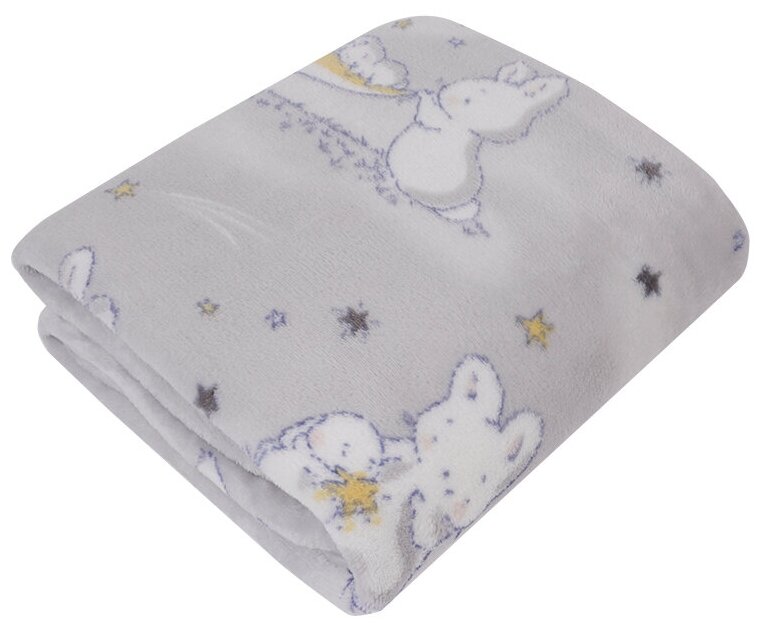 Купить Плед для новорожденного 75х100 пушистый детский в кроватку, коляску Tessolo Home, "Лунный зайчик", серый