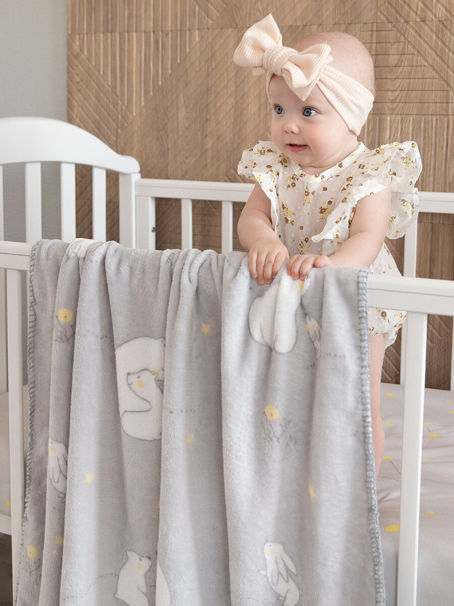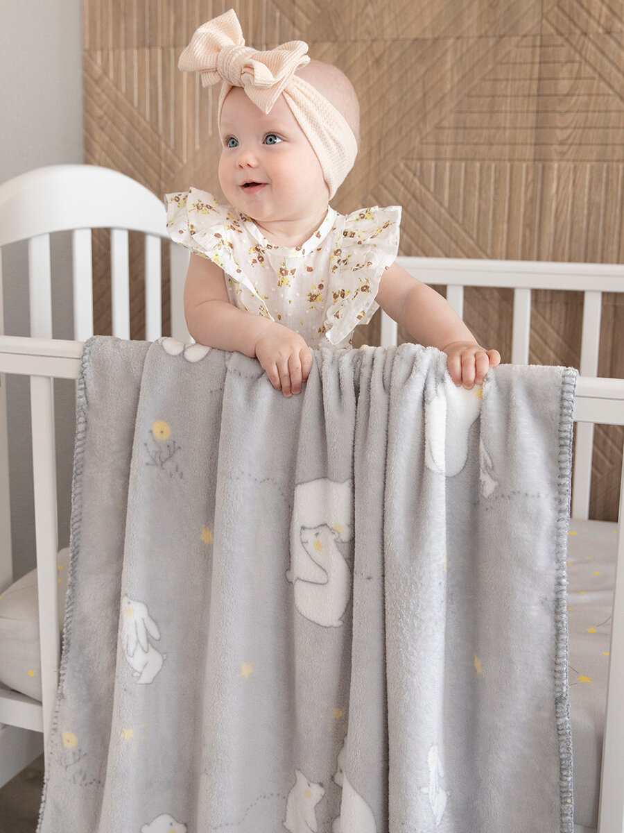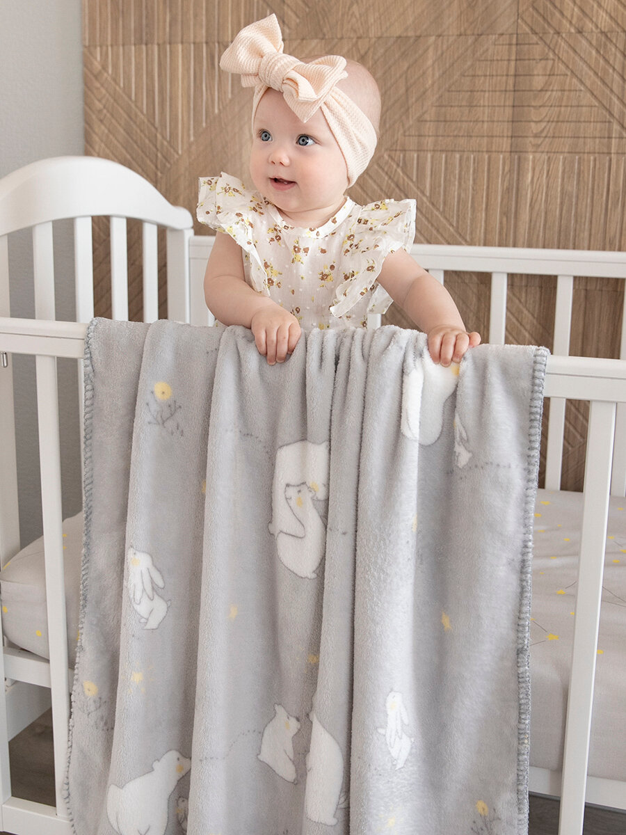 СохранитьПлед для новорожденного 75х100 пушистый детский в кроватку, коляску Tessolo Home "Мишутка", серый интересное: