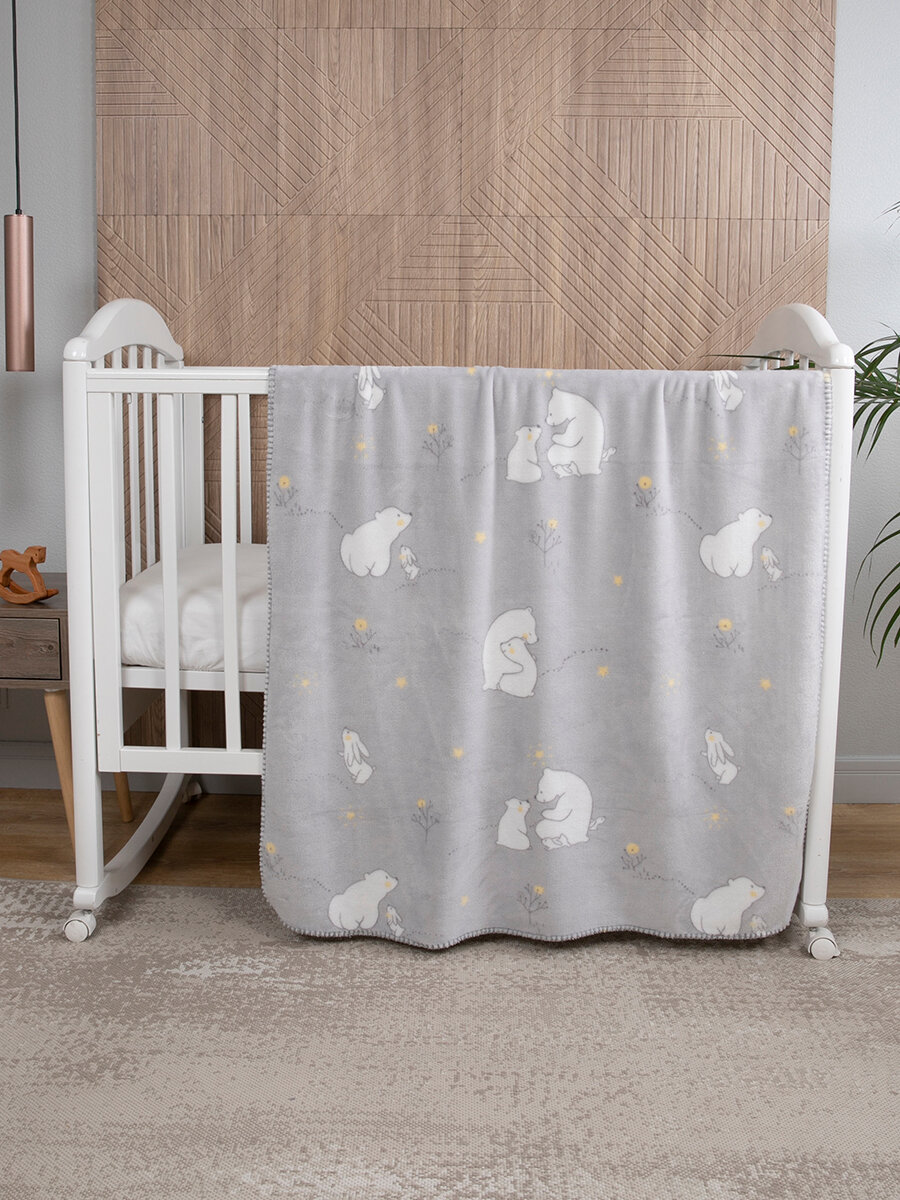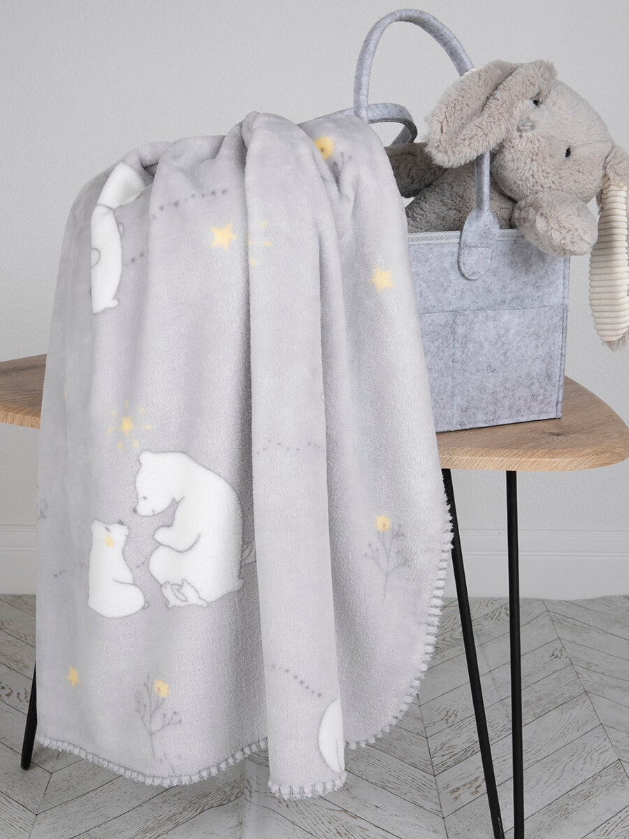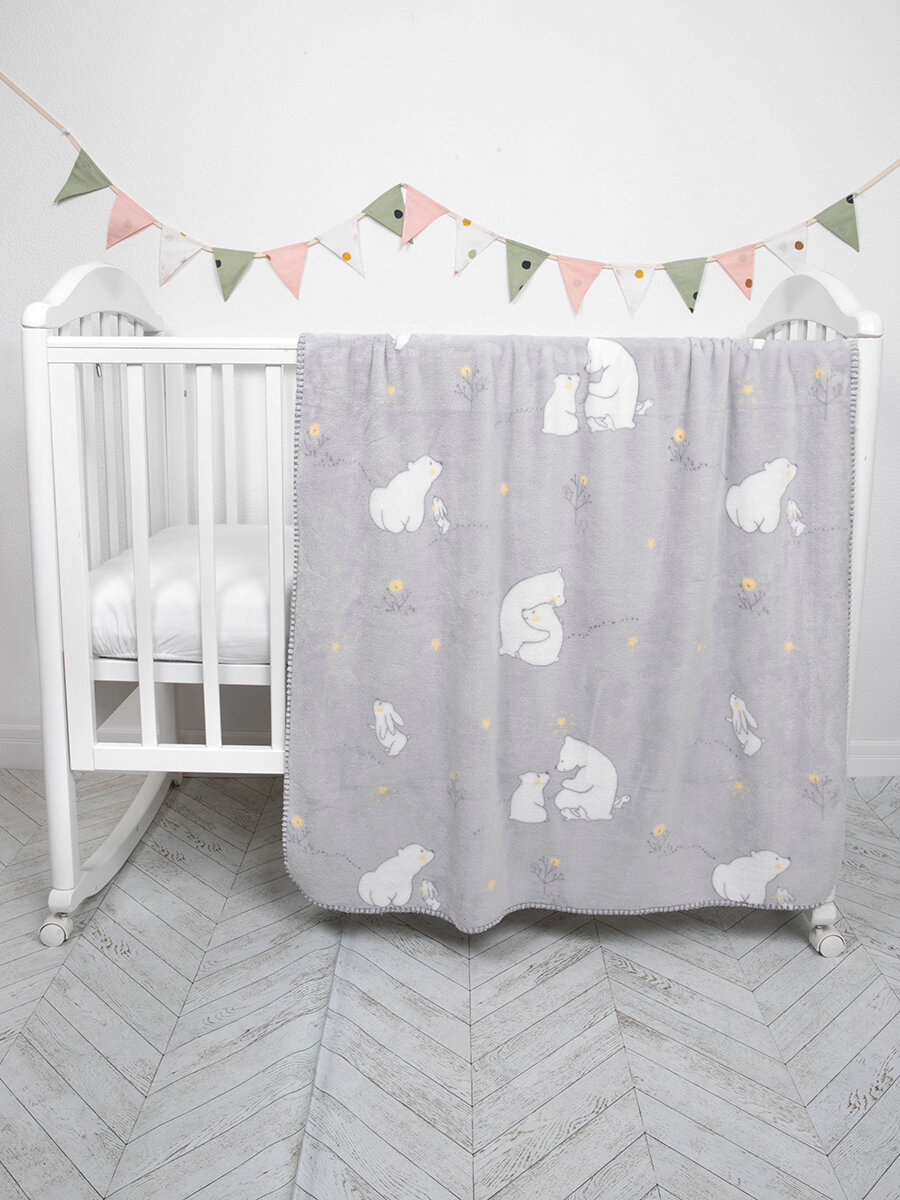 СохранитьПлед для новорожденного 75х100 пушистый детский в кроватку, коляску Tessolo Home "Мишутка", серый интересное: