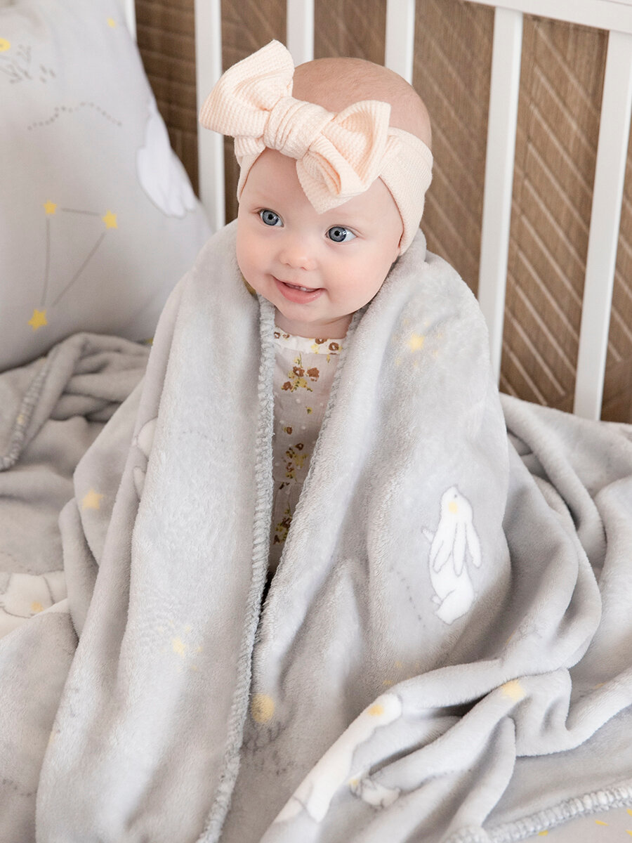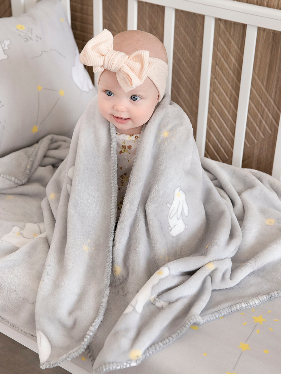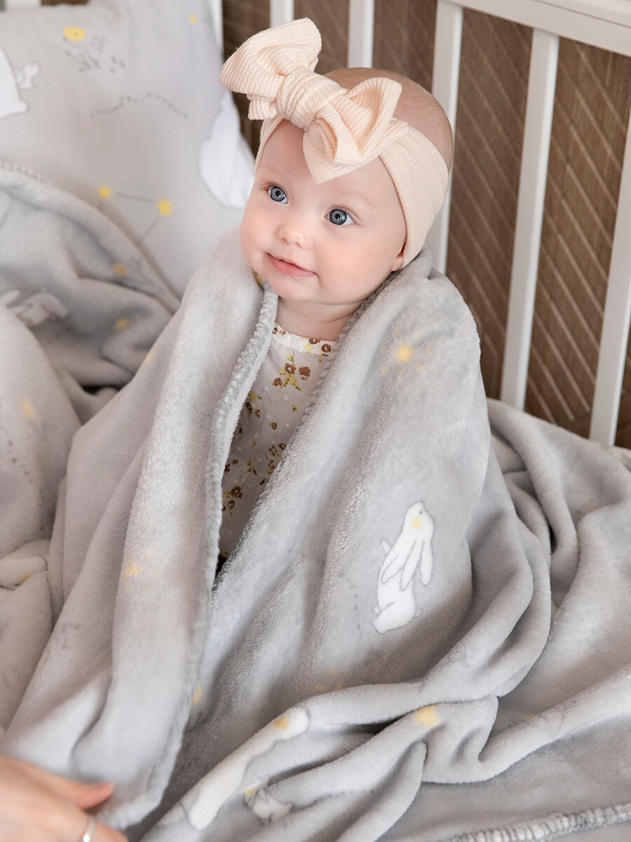 Плед для новорожденного 75х100 пушистый детский в кроватку, коляску Tessolo Home, "Лунный зайчик", серый