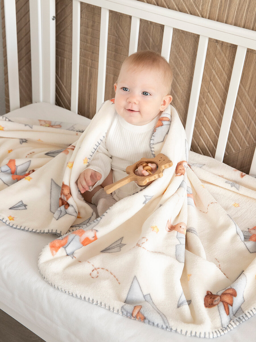 СохранитьПлед для новорожденного 75х100 пушистый детский плюшевый в кроватку коляску, Tessolo Home, "Самолётики", бежевый интересное: