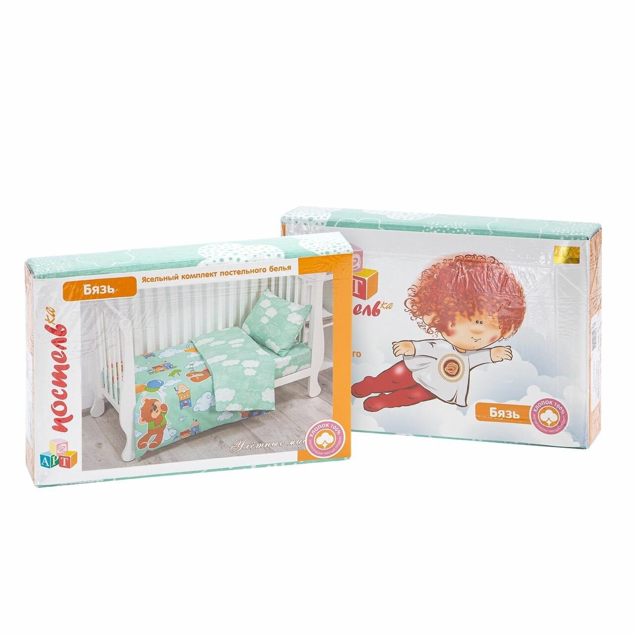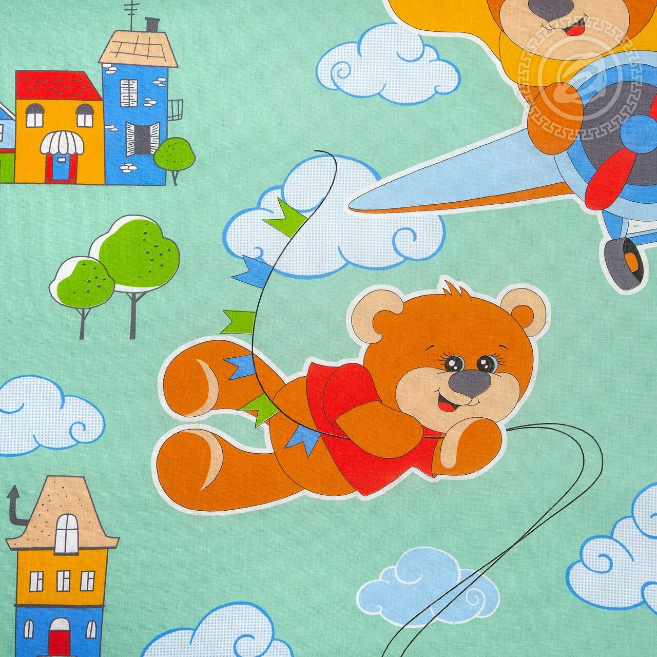 Детский комплект постельного белья из бязи АртПостель "Улетные мишки" Ясельный, в детскую кроватку, зеленый, зверюшки