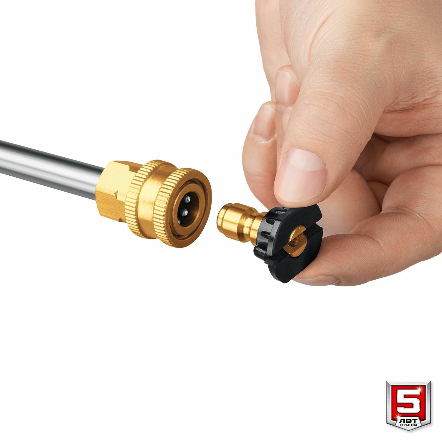 | Подробная комплектация | Мойка высокого давления - 1 шт. Шланг высокого давления - 1 шт. Пистолет - 1 шт. Распылитель - 1 шт. Насадка - 4 шт. Фильтр - 1 шт. Переходник М22/М14 - 1 шт. Игла для прочистки - 1 шт. Руководство по эксплуатации - 1 экз. |