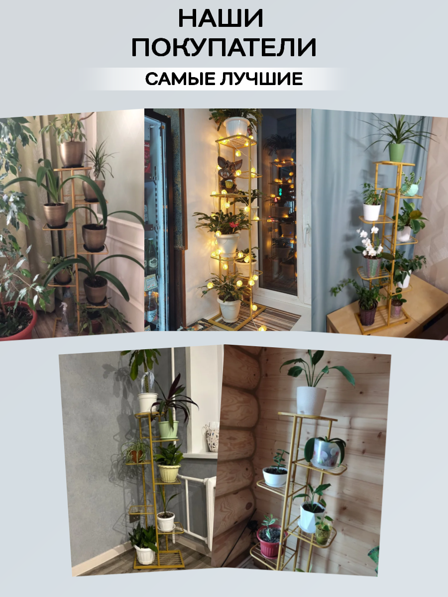 Ниже Вы можете прочитать отзывы на Подставка для цветов RombiLux, металлическая, напольная, на подоконник, на 8 кашпо, золотая, ознакомится с подробными характеристиками, посмотреть интересные обзоры и фотографии на Подставка для цветов RombiLux, металлическая, напольная, на подоконник, на 8 кашпо, золотая.