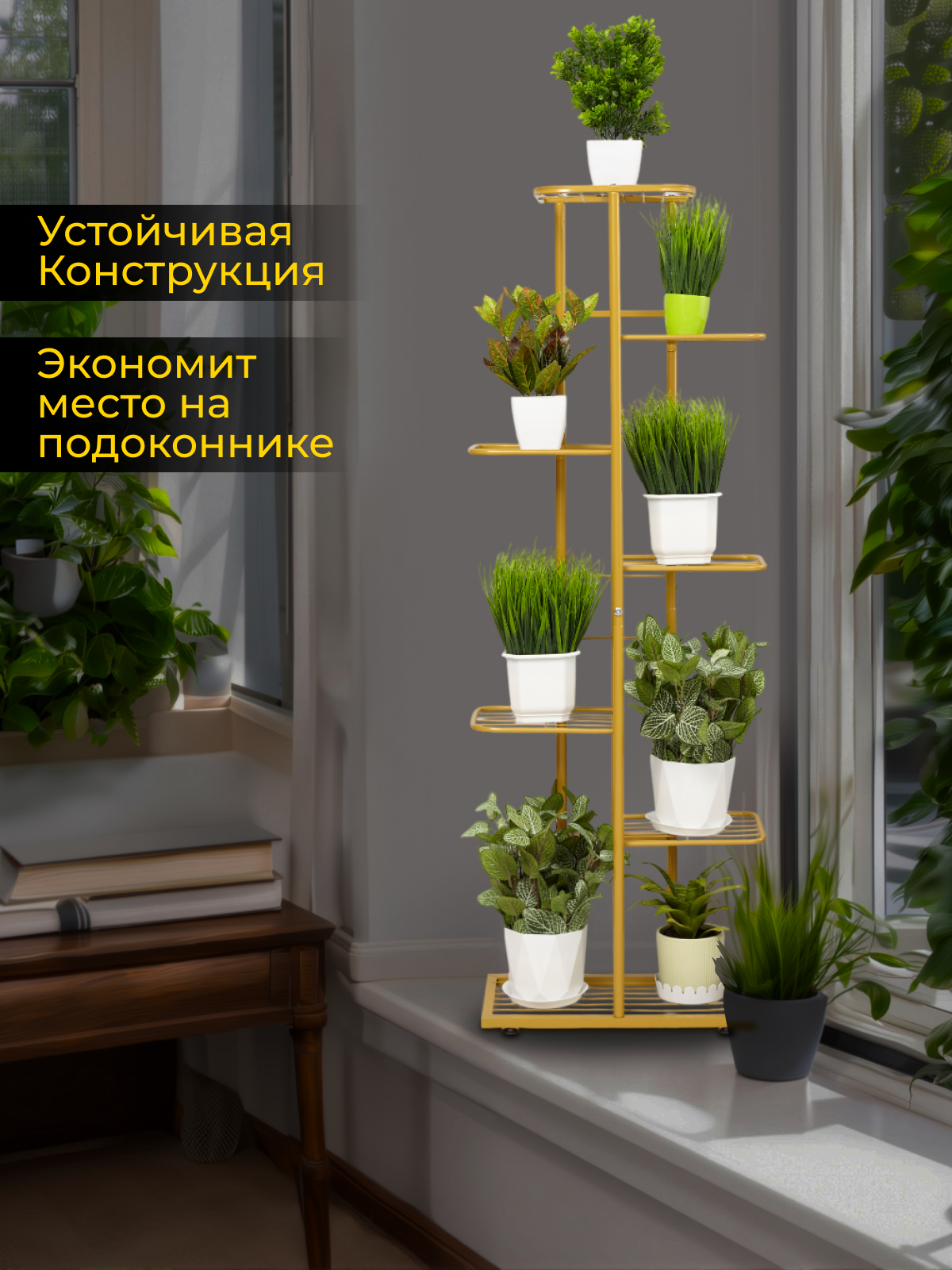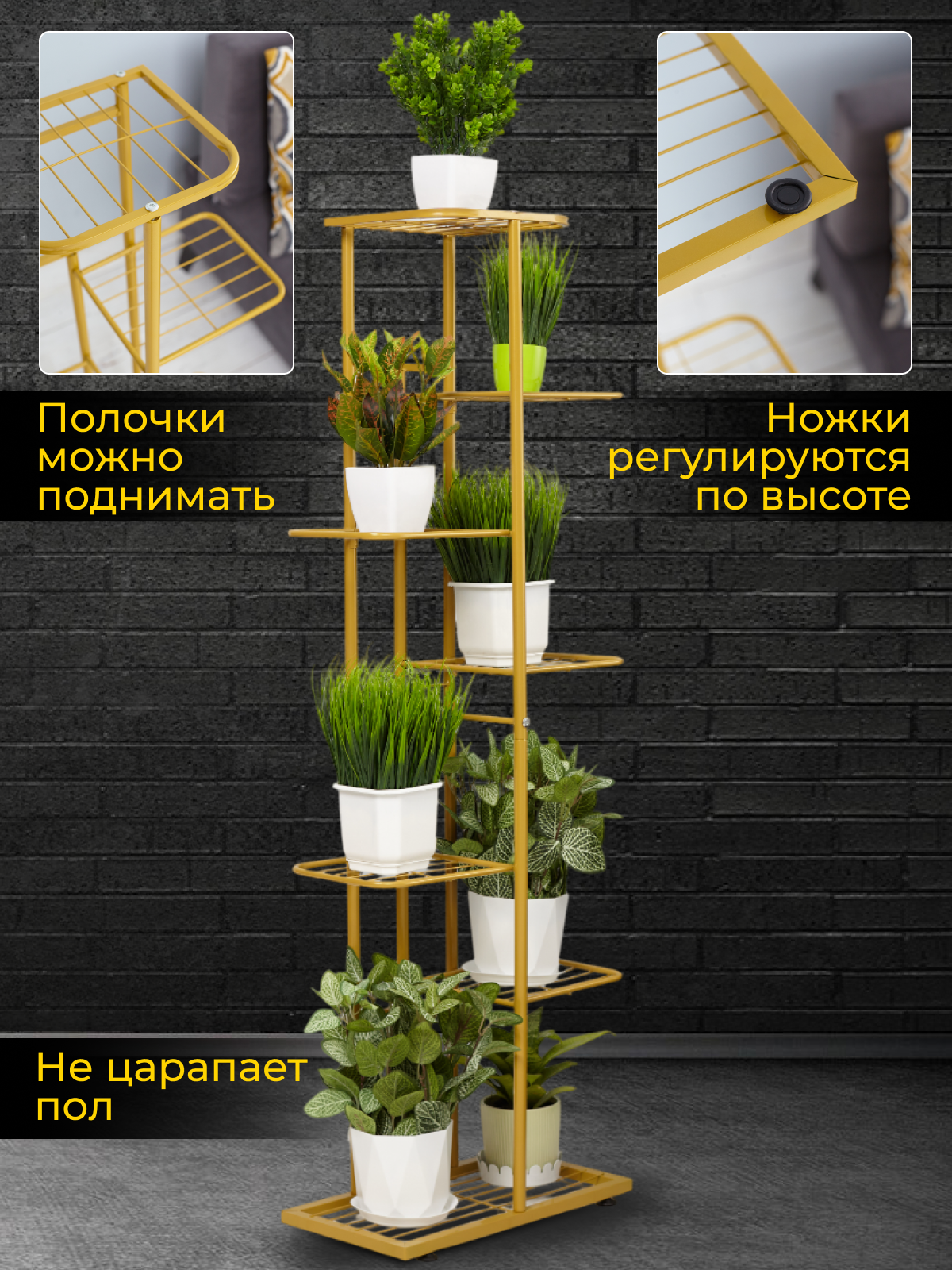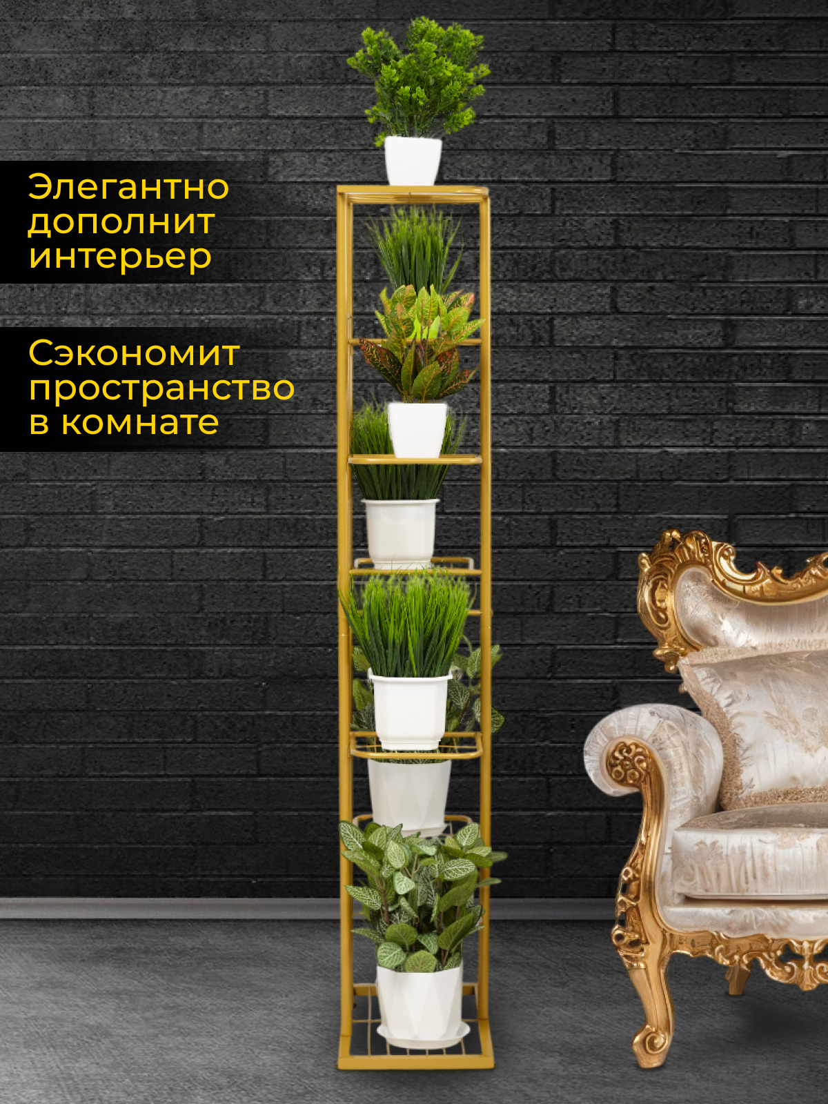 СохранитьПодставка для цветов RombiLux, металлическая, напольная, на подоконник, на 8 кашпо, золотая интересное: