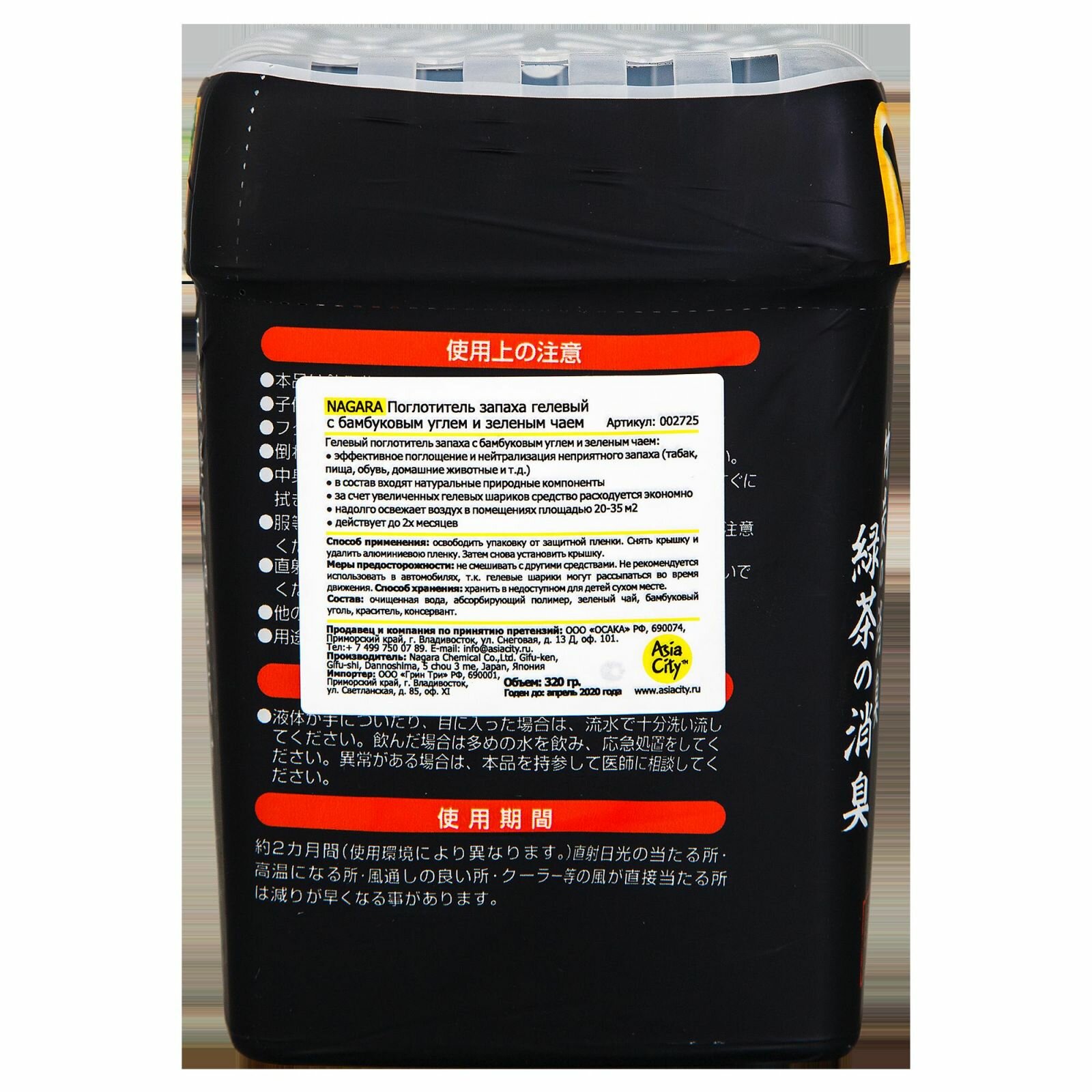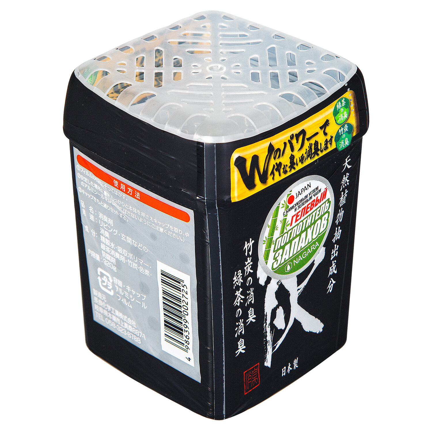 Купить NAGARA Поглотитель запаха гелевый для помещений, с бамбуковым углем и зеленым чаем / Нейтрализатор запахов табака, животных, обуви, туалета, шкафа (Япония) - 320 г