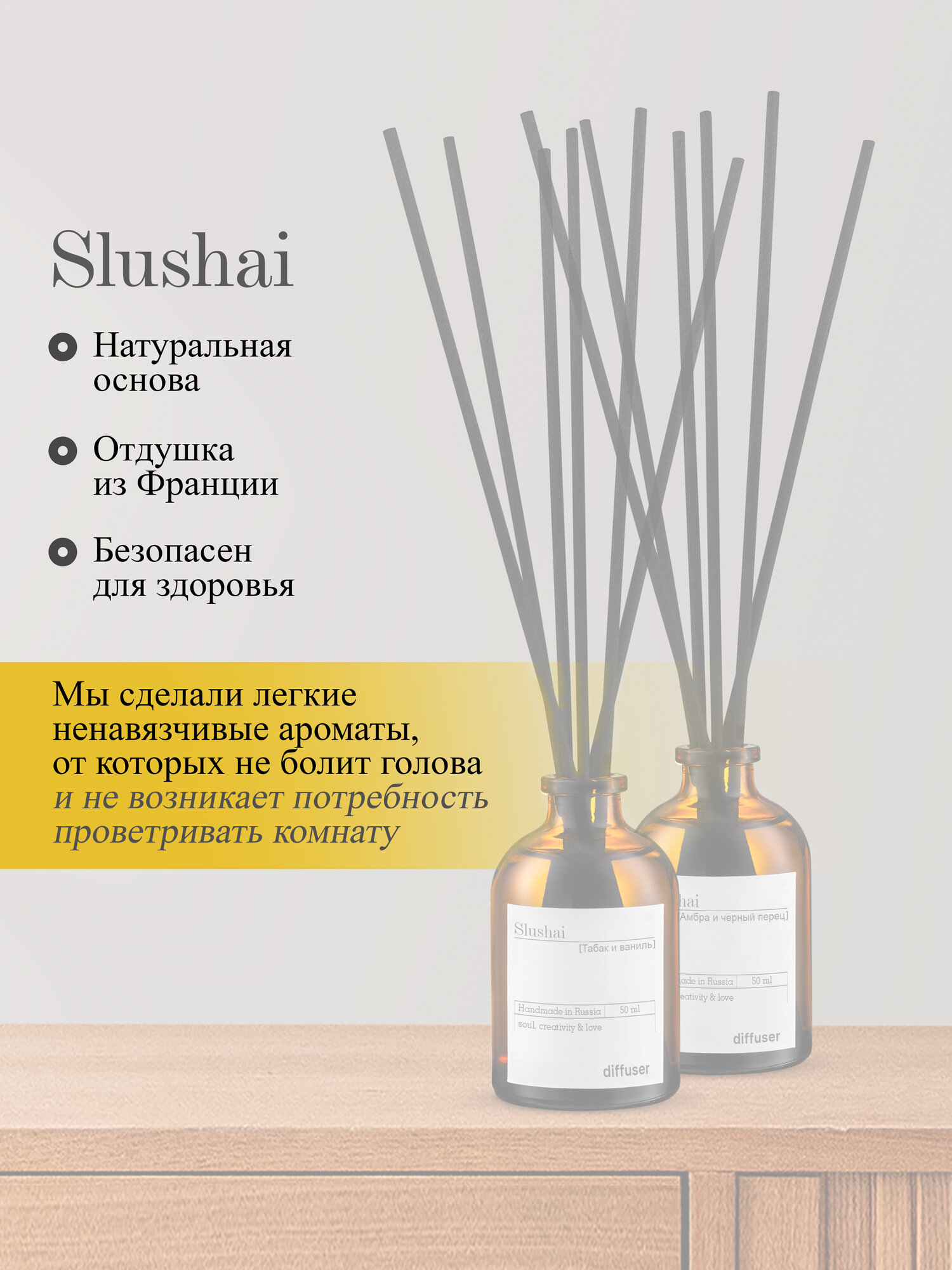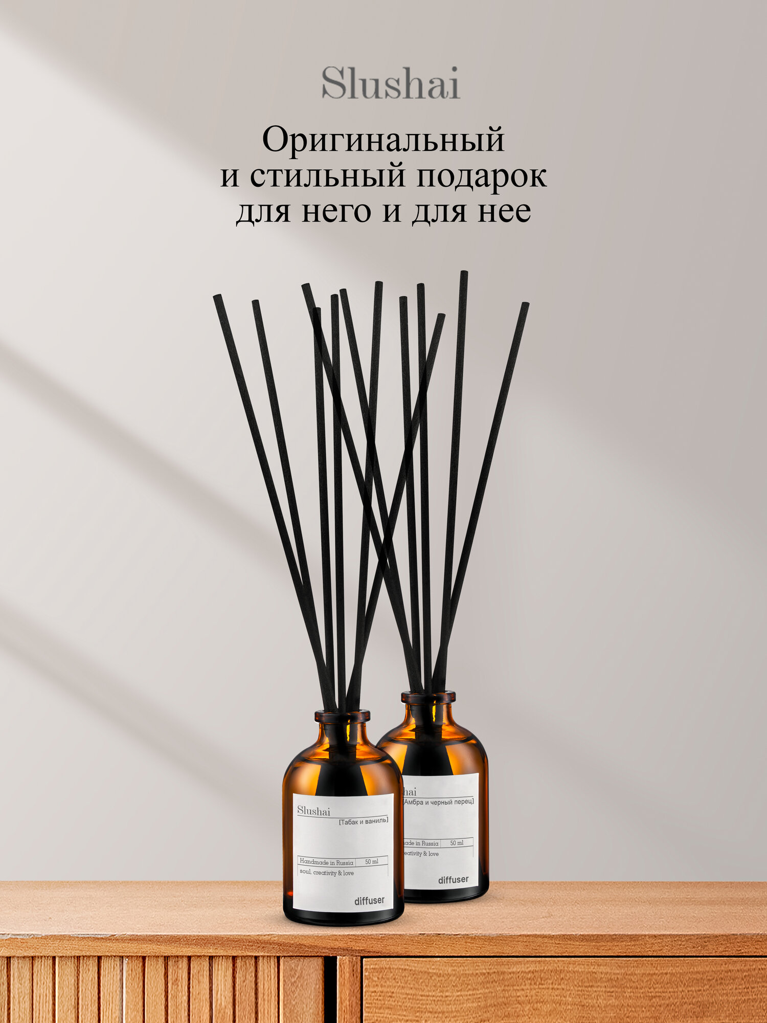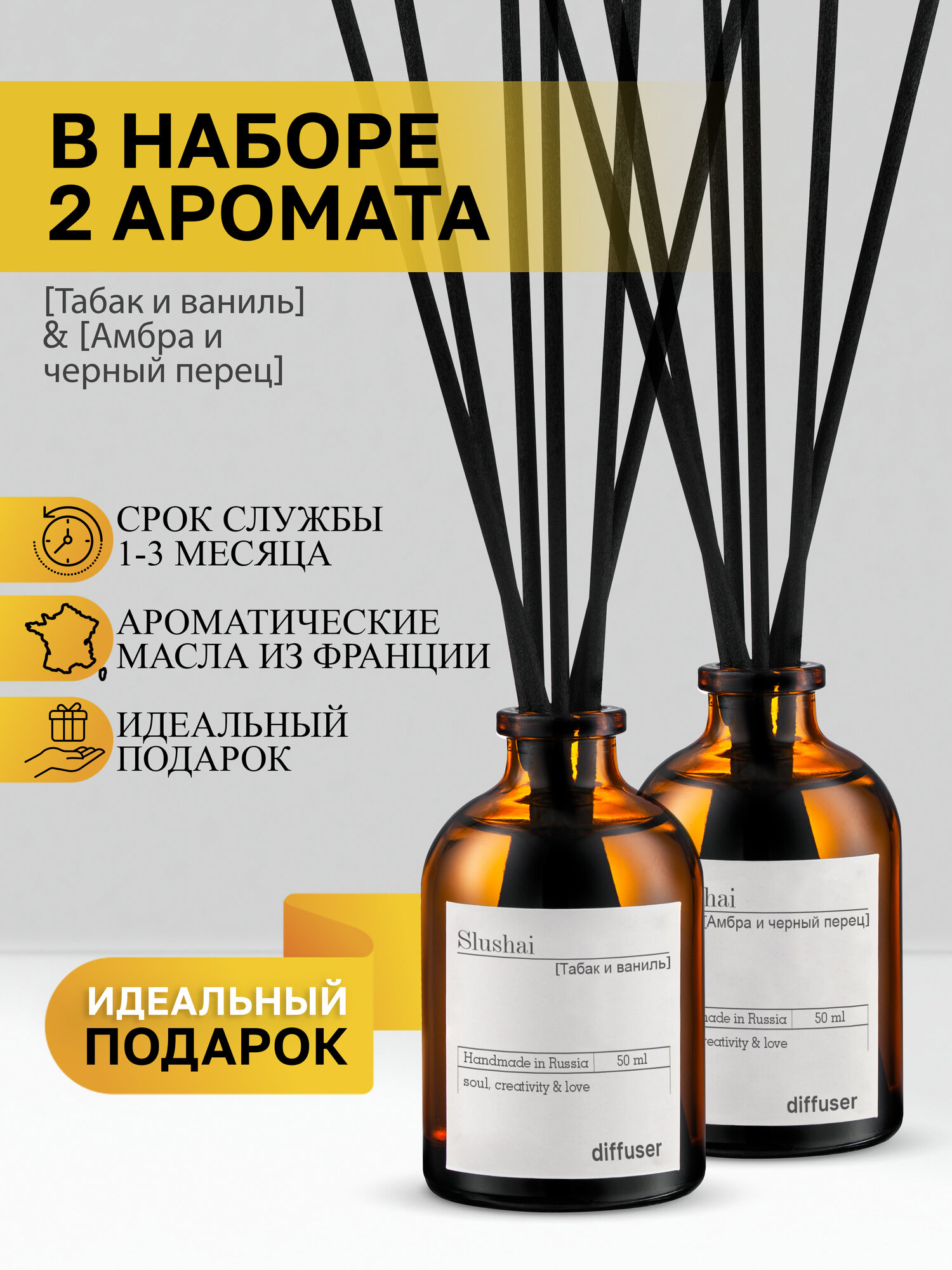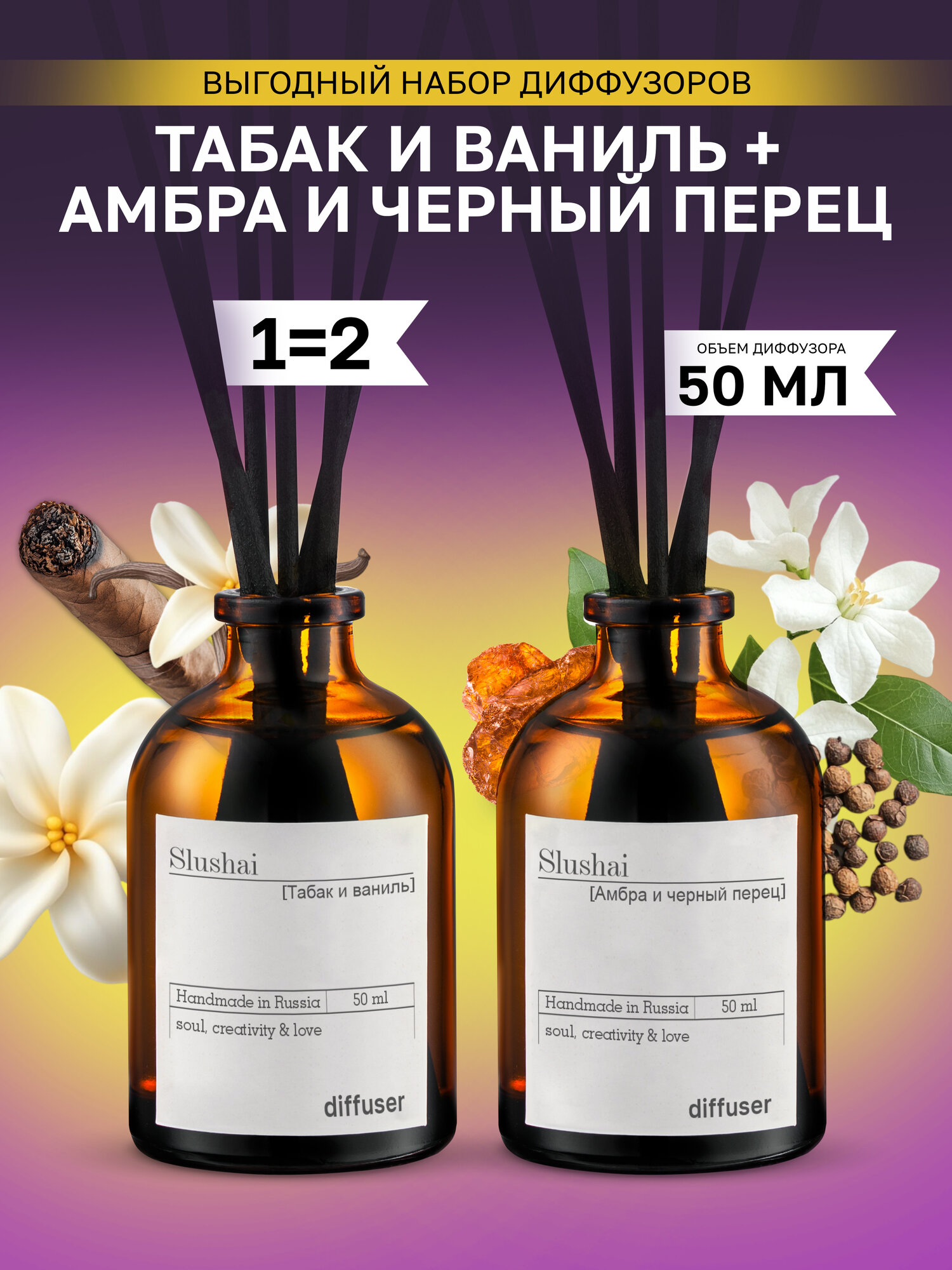 Купить Набор ароматических диффузоров Slushai "Амбра и черный перец", "табак и ваниль"