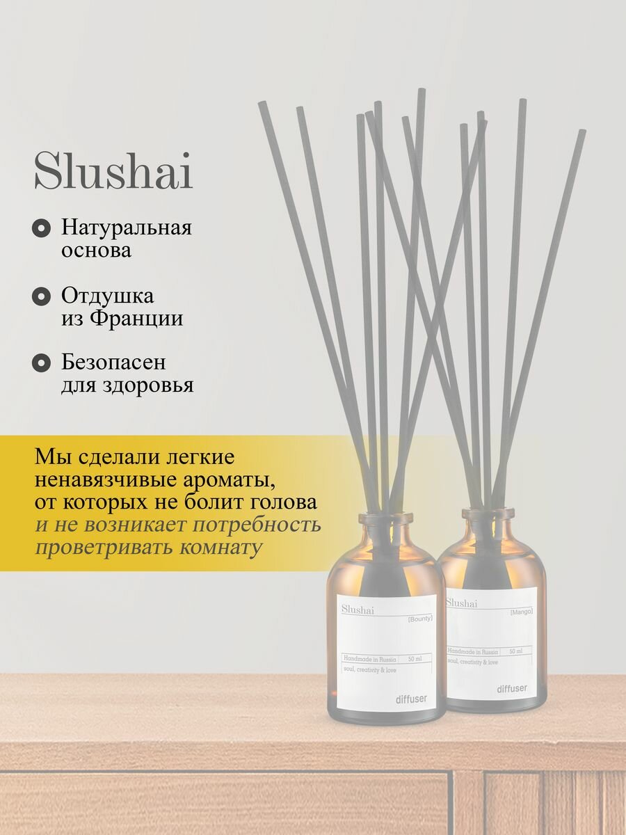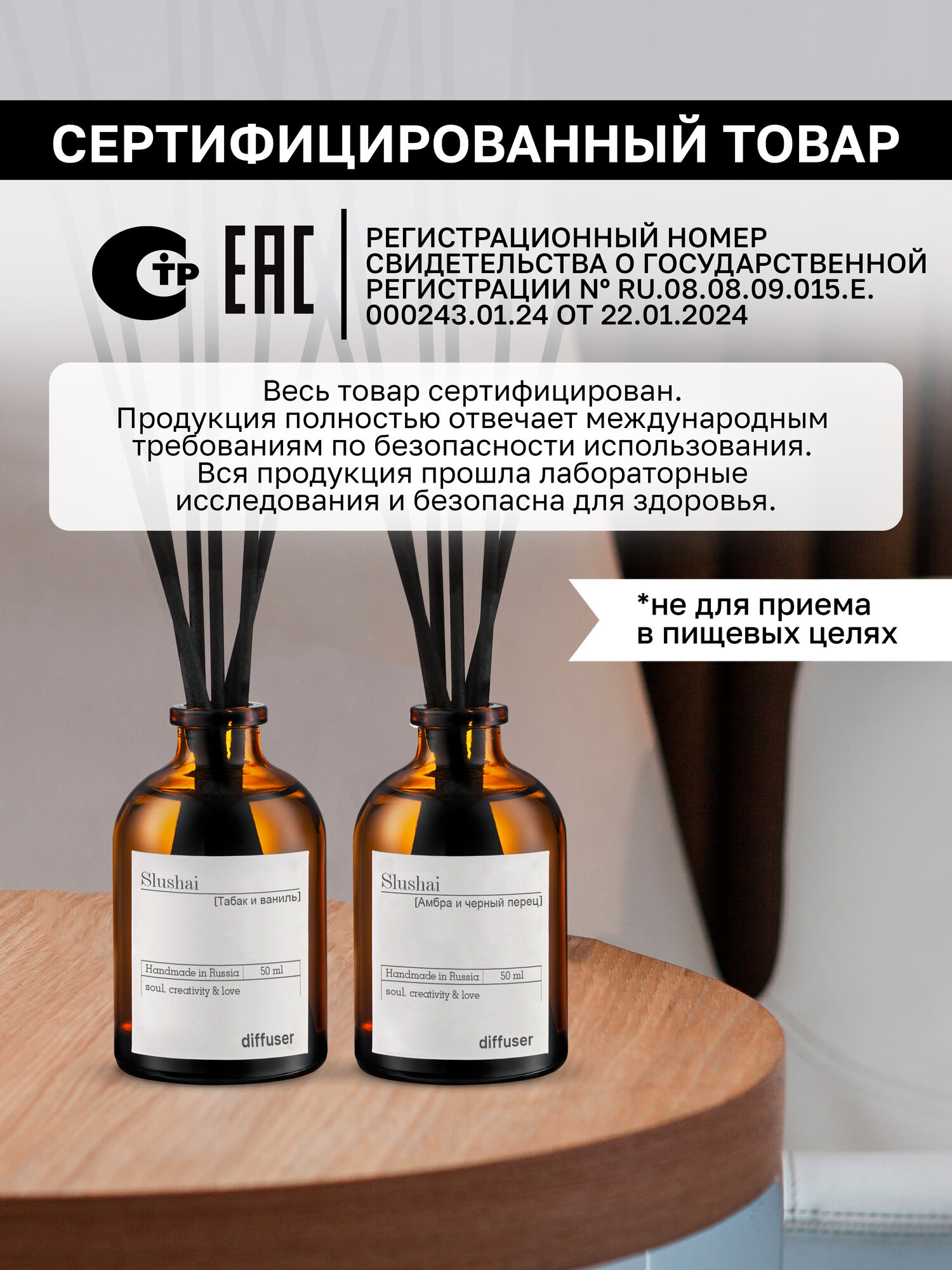 Набор ароматических диффузоров Slushai "Амбра и черный перец", "табак и ваниль"