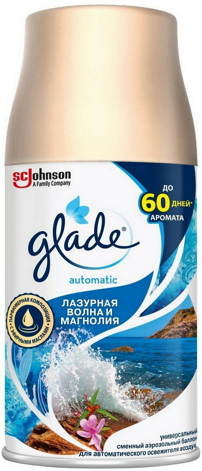 Glade освежитель воздуха Лазурная волна и магнолия, автоматический, со сменным баллоном, 269 мл, , интересное: