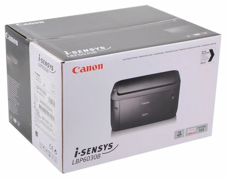 Canon i-SENSYS LBP6030b (8468B042AA/8468B042) (лазерный A4 2400x600dpi 18стр/мин USB,+2 картриджа 725)