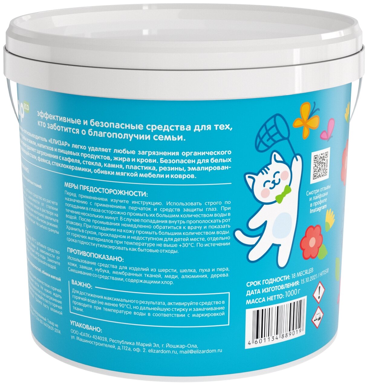Елизар, кислородный пятновыводитель, отбеливатель, очиститель, концентрат 1 кг, для цветного и белого