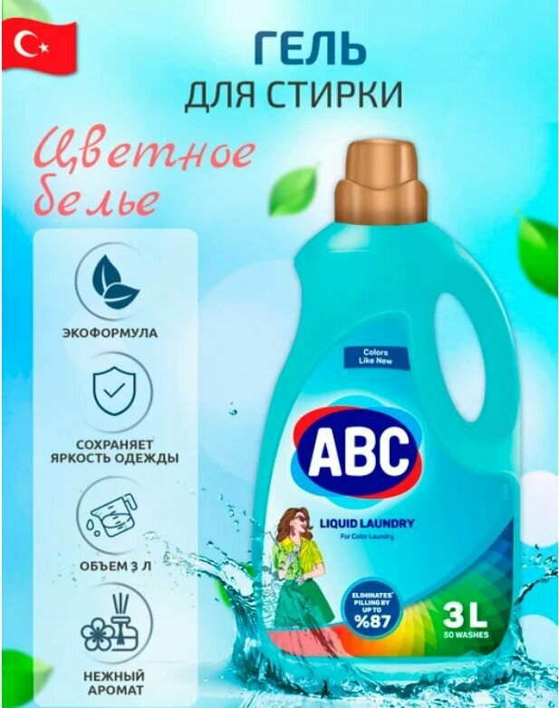Гель для стирки ABC для цветного белья, 3 л (50 стирок)
