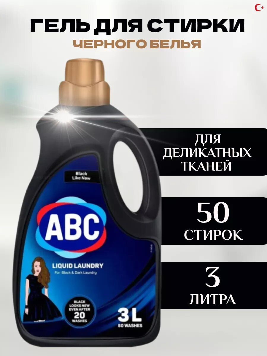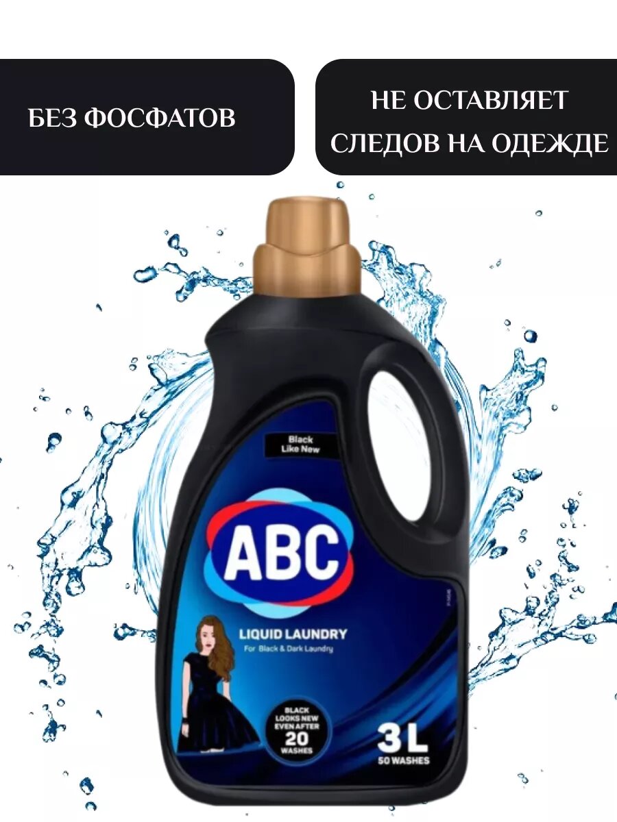 Средство для стирки белья ABC "Черных и темных тканей", гель для стирки, 3 л.