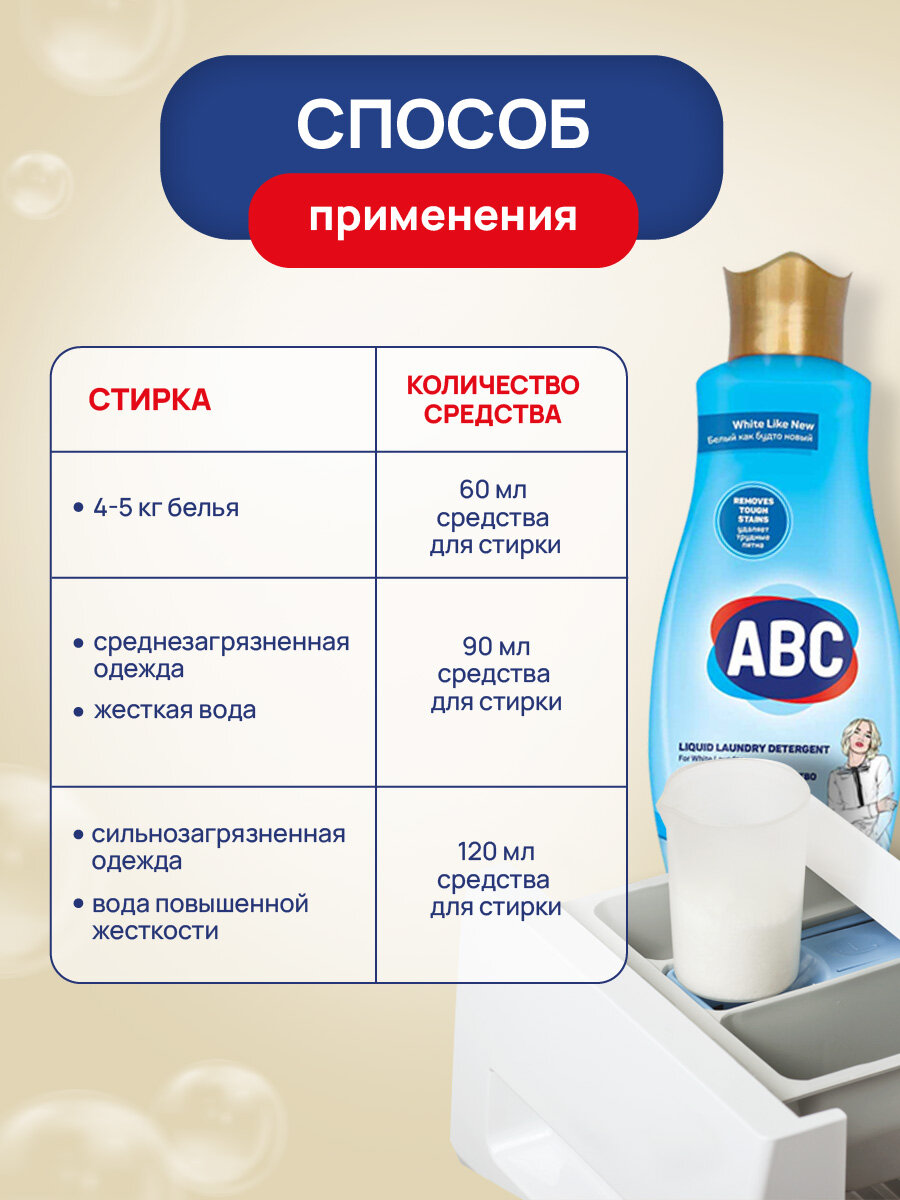Купить Средство для стирки ABC жидкое Блестящий белый 1500мл