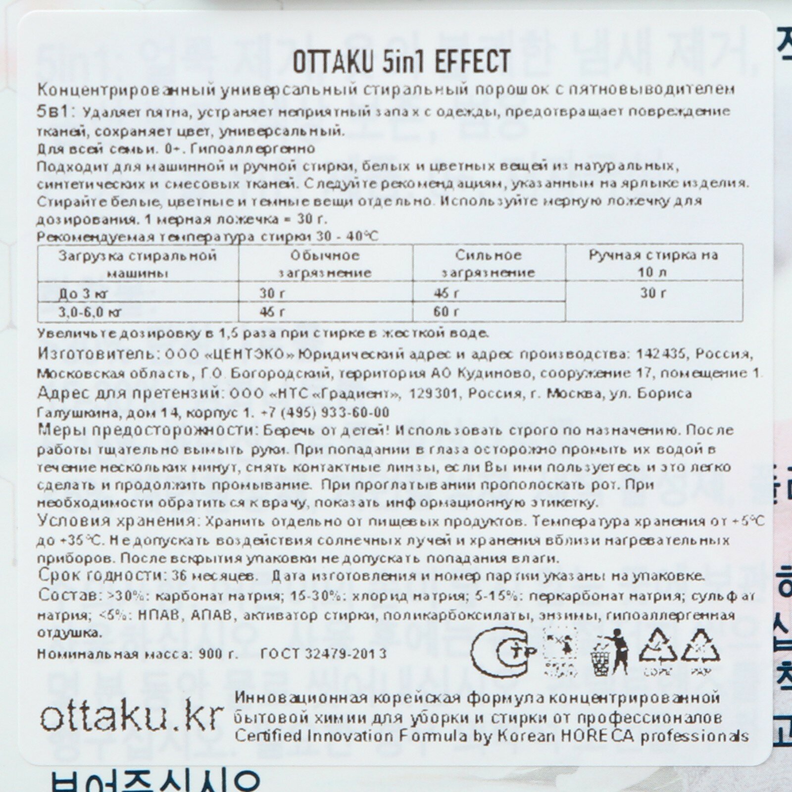 Стиральный порошок 5in1, Ottaku, Effect с пятновыводителем, универсальный, концентрат, 900 г