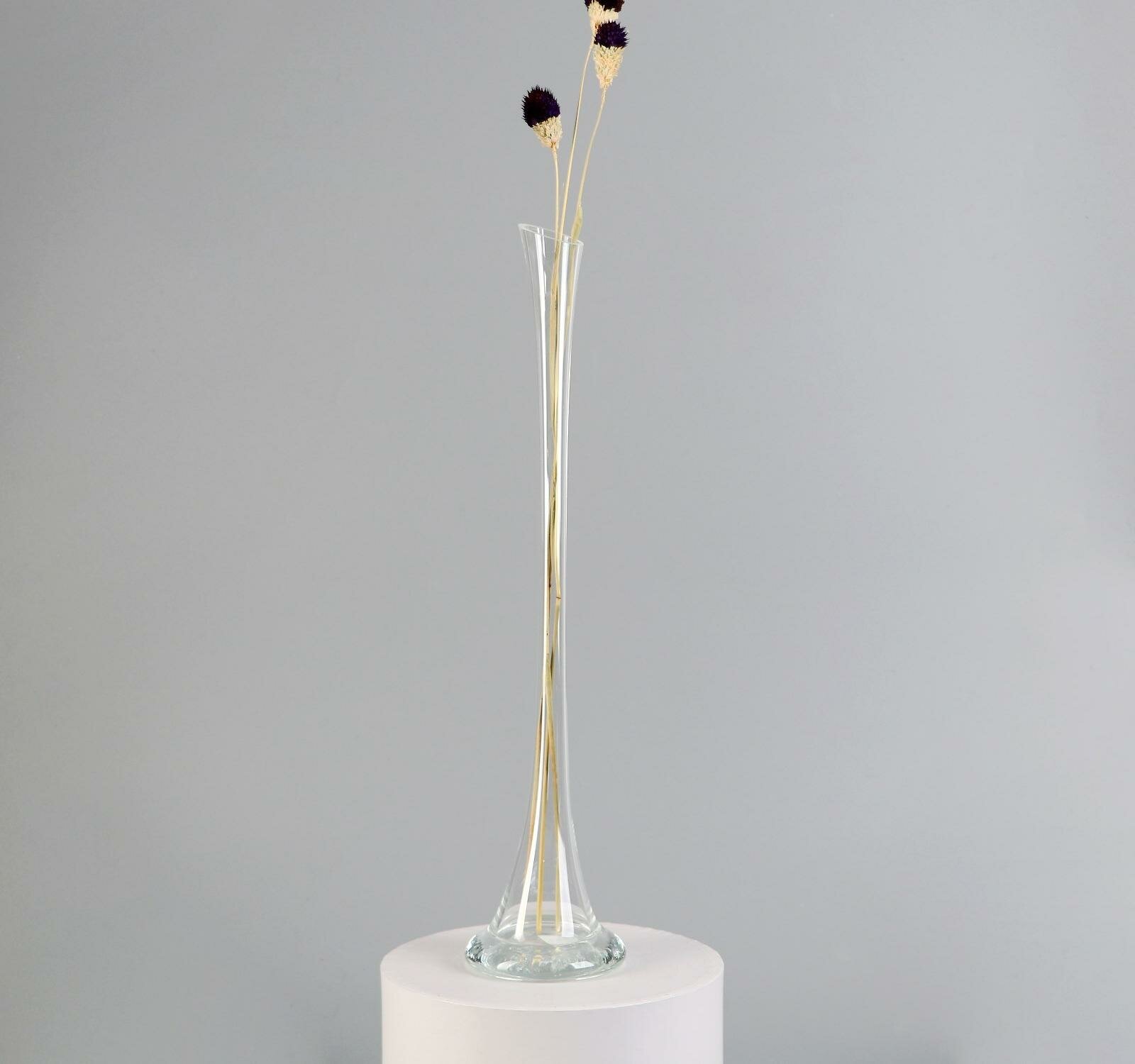 Прозрачная настольная ваза Bogacho Белла из стекла на декоративной ножке для букетов, высоких цветов и сухоцветов