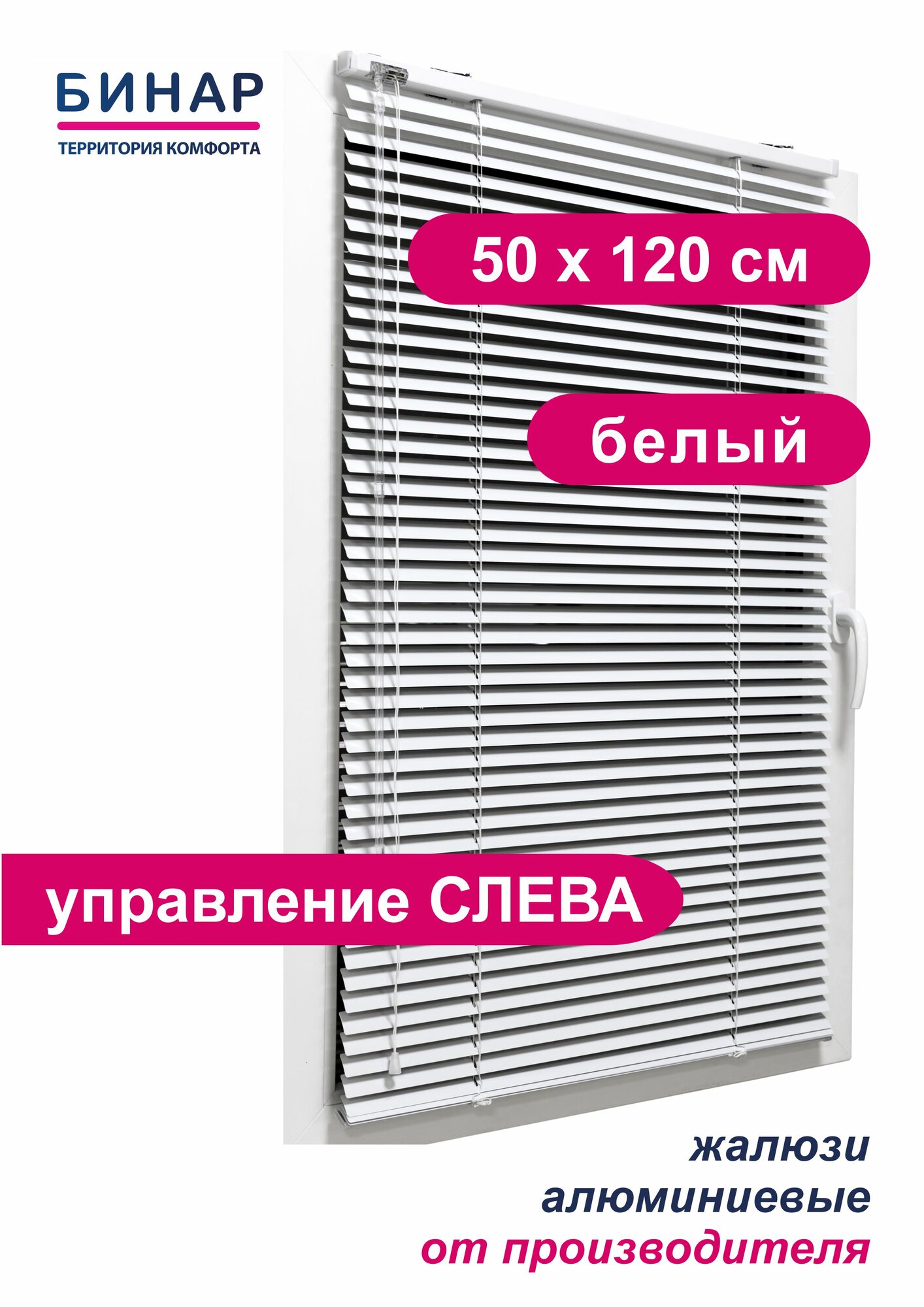 Купить Жалюзи горизонтальные БИНАР, алюминий, 50x120 см, управление левое, белые