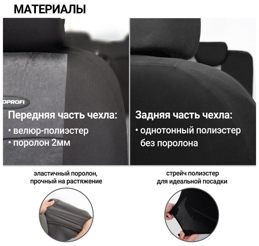 Комплект чехлов AUTOPROFI TT-902V, серый/черный