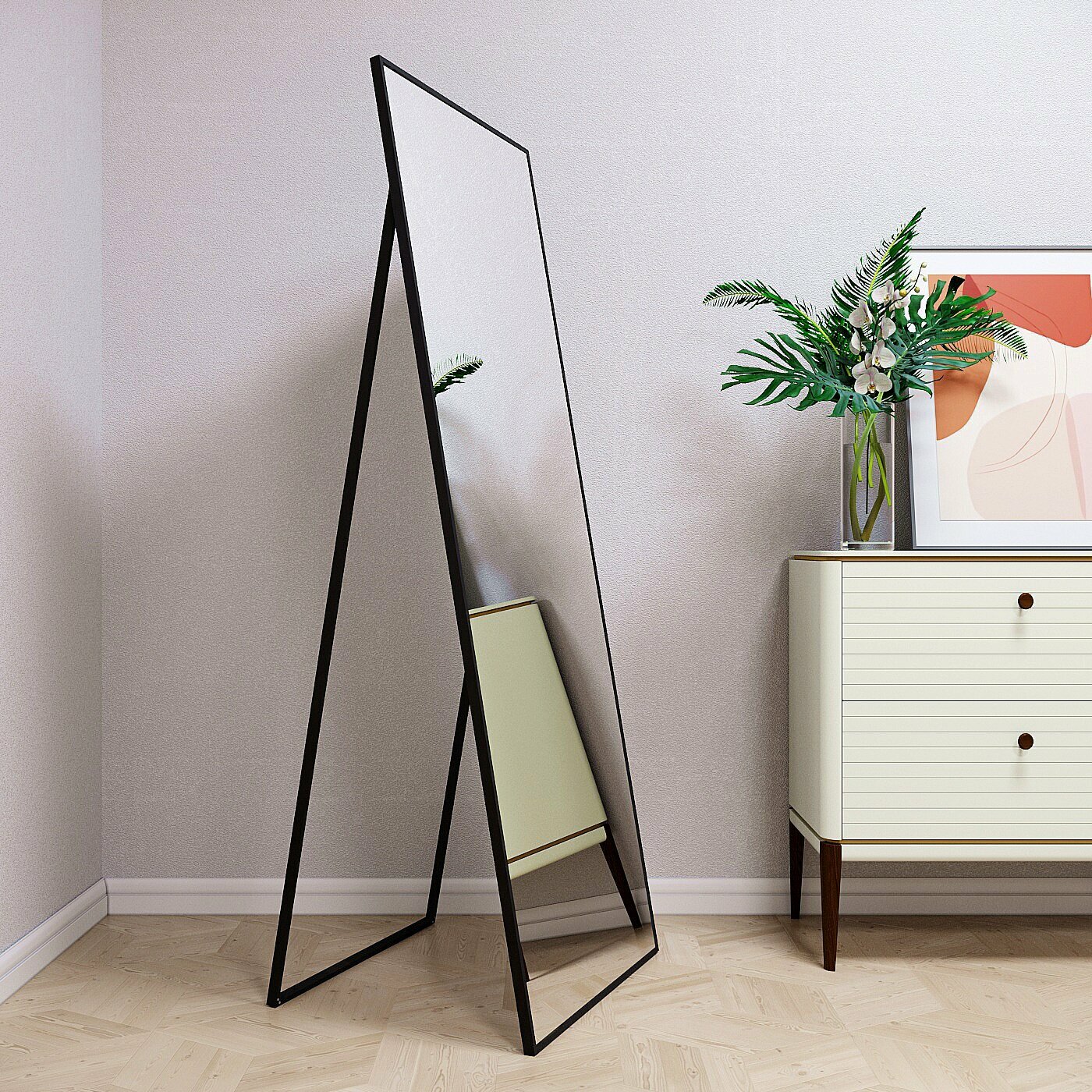 Купить Зеркало напольное в алюминиевой раме Market-house 170х60 см. Черное