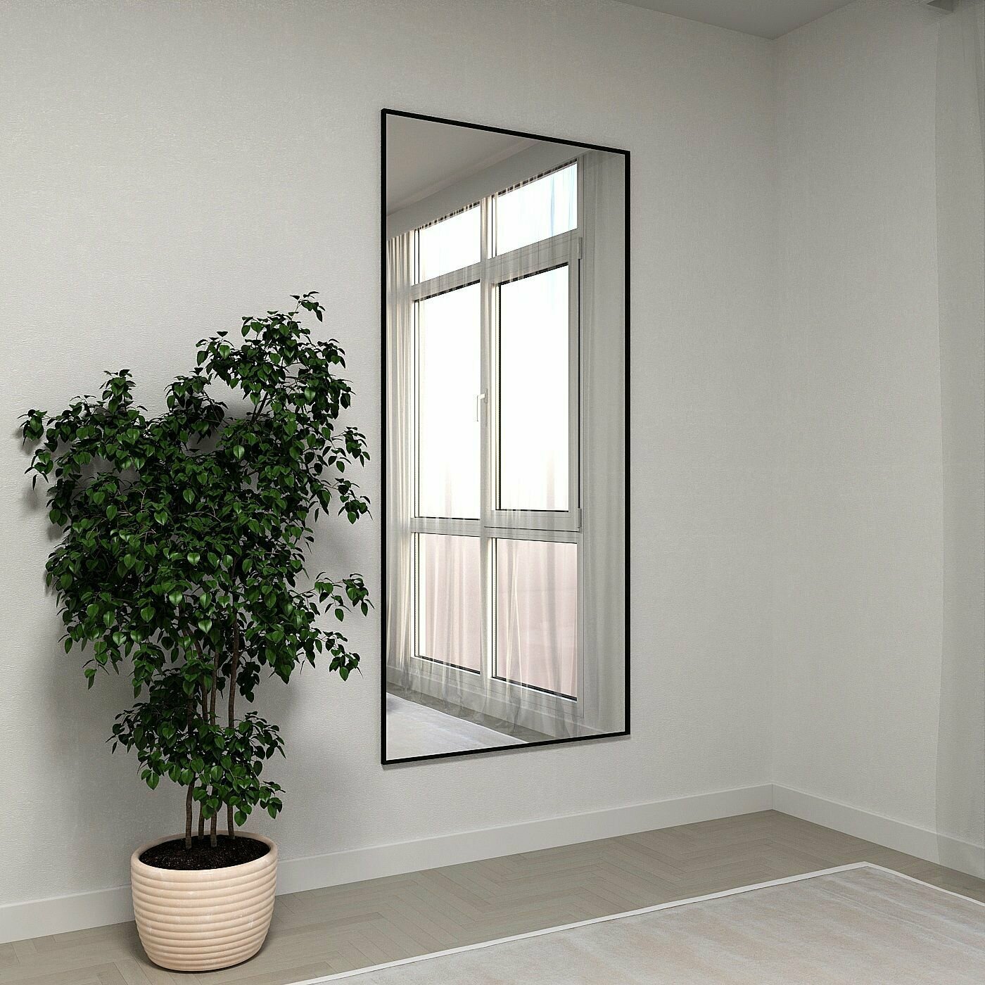 Зеркало настенное в алюминиевой раме ALUMIRROR, 180х60 см. Цвет: Черное