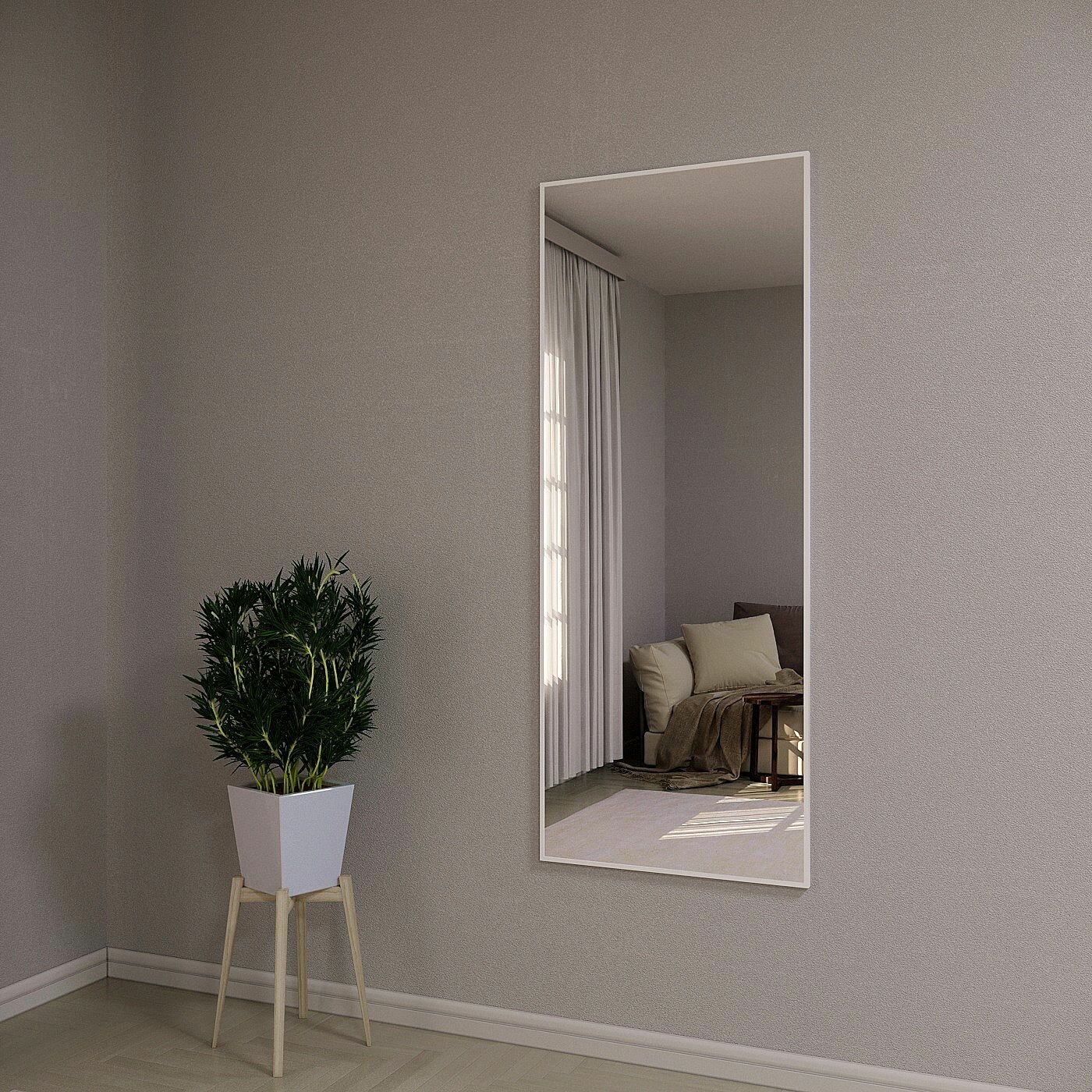 Зеркало настенное в алюминиевой раме ALUMIRROR, 180х60 см. Цвет: Белое