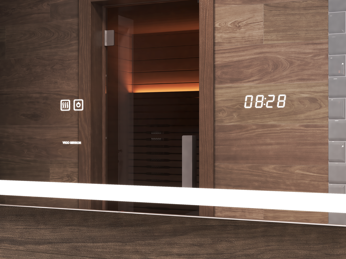 Зеркало с LED-подсветкой, часами и антизапотеванием VIGO GEOMETRY LUXE 800
