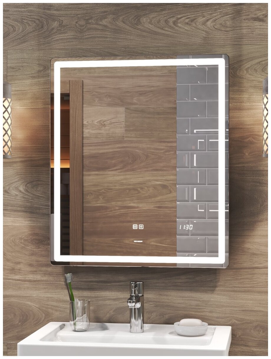 Зеркало настенное для ванной КерамаМане 70*100 см с холодной подсветкой 6000 К с сенсорной кнопкой
